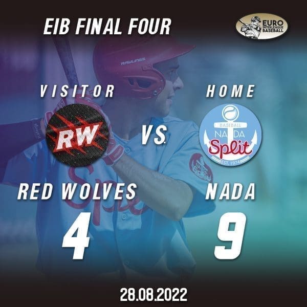 Bejzbolaši Nade SM prvaci su EIB-a. U finalu su slavili protiv prvaka Mađarske. Pobjednički bacać za Nadu SM je bio Jones koji je odlično kontrolirao utakmicu, dok su napad predvodili Belin i Ćurković. BK Nada SM-BC Red Wolwes 9:4