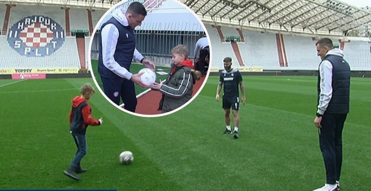 Sreći nije bilo kraja kad je ugledao svoje idole na terenu. Marko Livaja i Lovre Kalinić dobili su jakog protivnika.