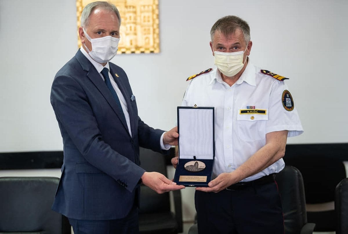 Gradonačelnik Andro Krstulović Opara, u nazočnosti svog zamjenika Nina Vele, županijskog vatrogasnog zapovjednika i dosadašnjeg zapovjednika Javne vatrogasne postrojbe Split Ivana Kovačevića i novog zapovjednika Maria Mikasa te svojih suradnika, uručio je danas javno priznanje - Medalju Grada Splita koordinatoru Kriznog stožera civilne zaštite Grada Splita, Nenadu Ružiću.