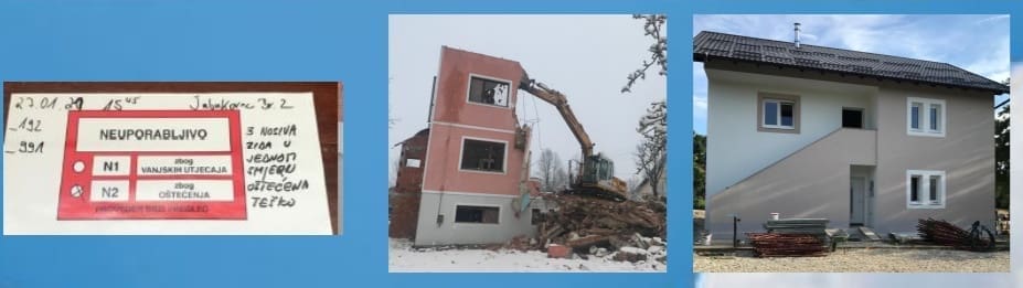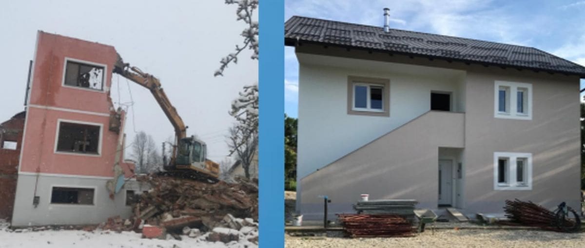 Po dovršetku izrade projektne dokumentacije, pristupilo se rušenju i uklanjanju oštećenog objekta, a potom i izgradnji novog s 2 stambene jedinice (prizemlje, kat i potkrovlje) ukupne netto površine 218,5 kvadratnih metara.