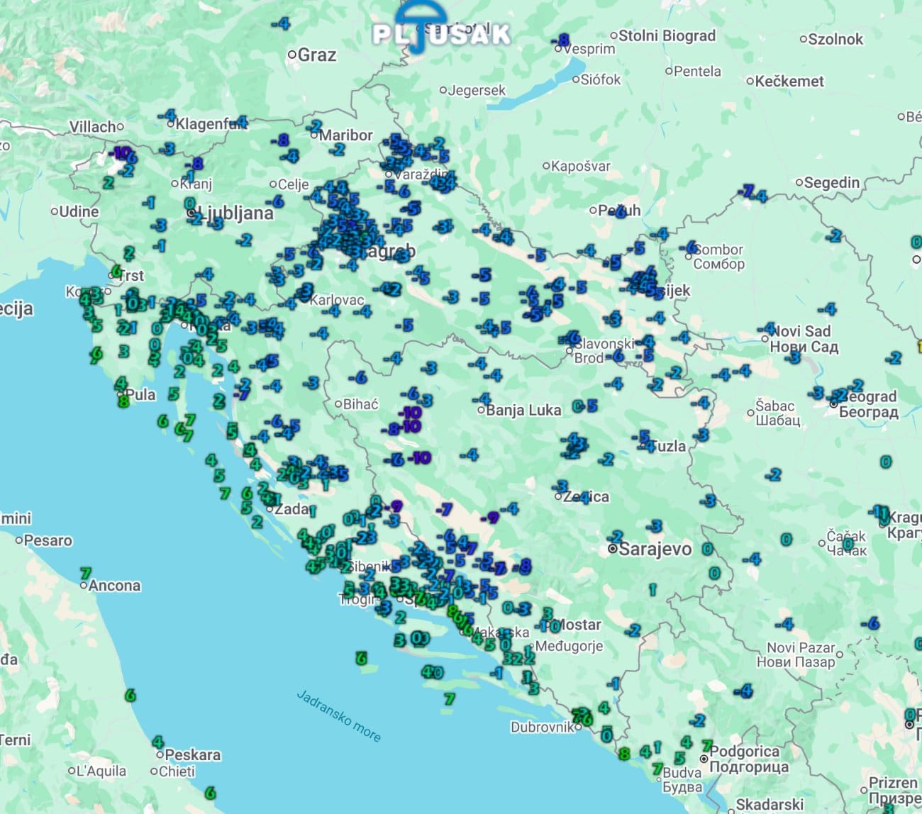 Samo jedan dan trajala je bura koja je u nedjelju obradovala mnoge. Kako i ne bi kada su nas od početka godine većinom pratili jugo, oblaci, kiša i natprosječna toplina. Buru je danas ponovno zamijenilo jugo kao uvod u novu ciklonu i novu promjenu vremena. Prije toga, današnje jutro bilo je jedno od hladnijih posljednjih tjedana. Primjerice, Tijarica u Dalmatinskoj zagori zabilježila je -7, Dolića Draga i Nisko -5, a mraza je bilo i ponegdje uz obalu i na otocima.