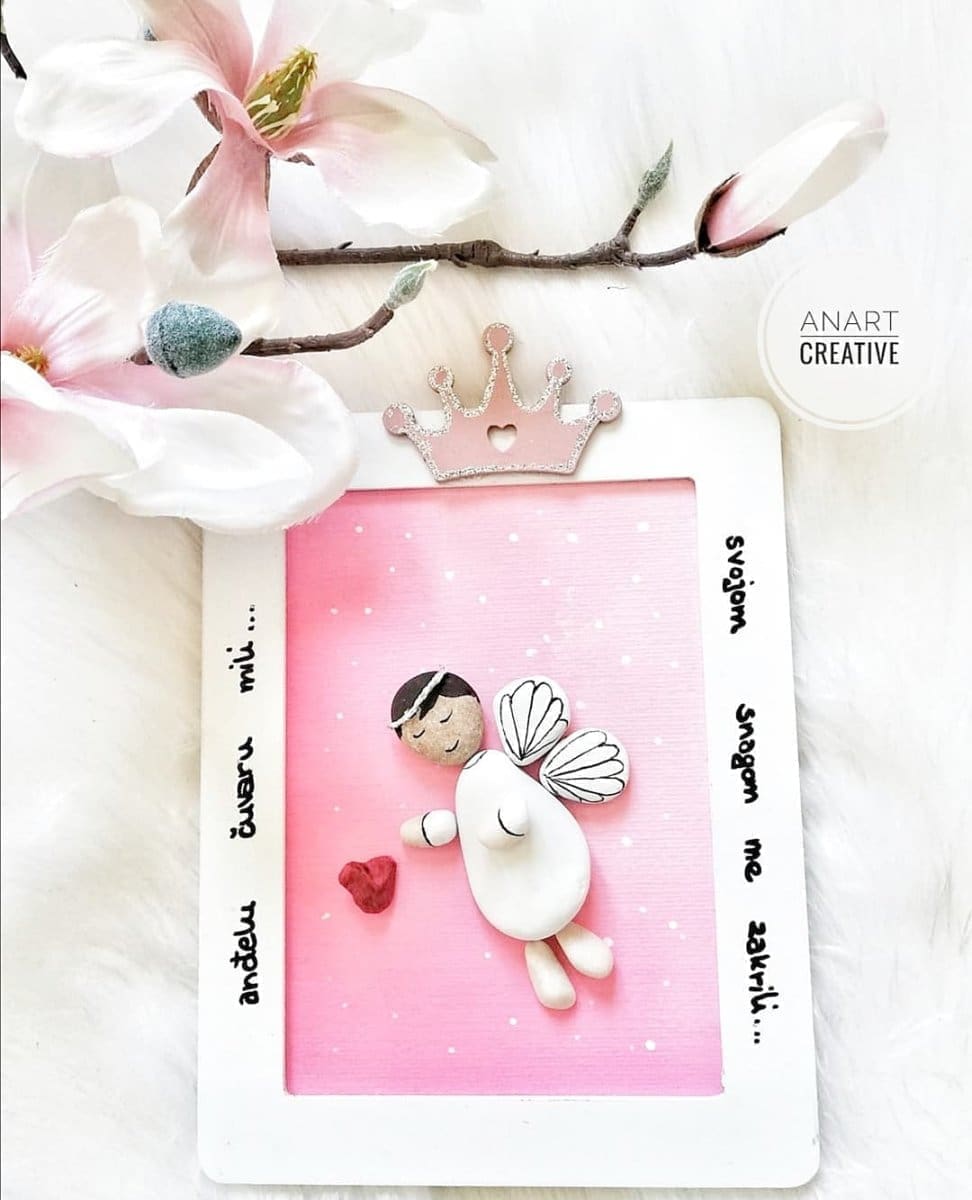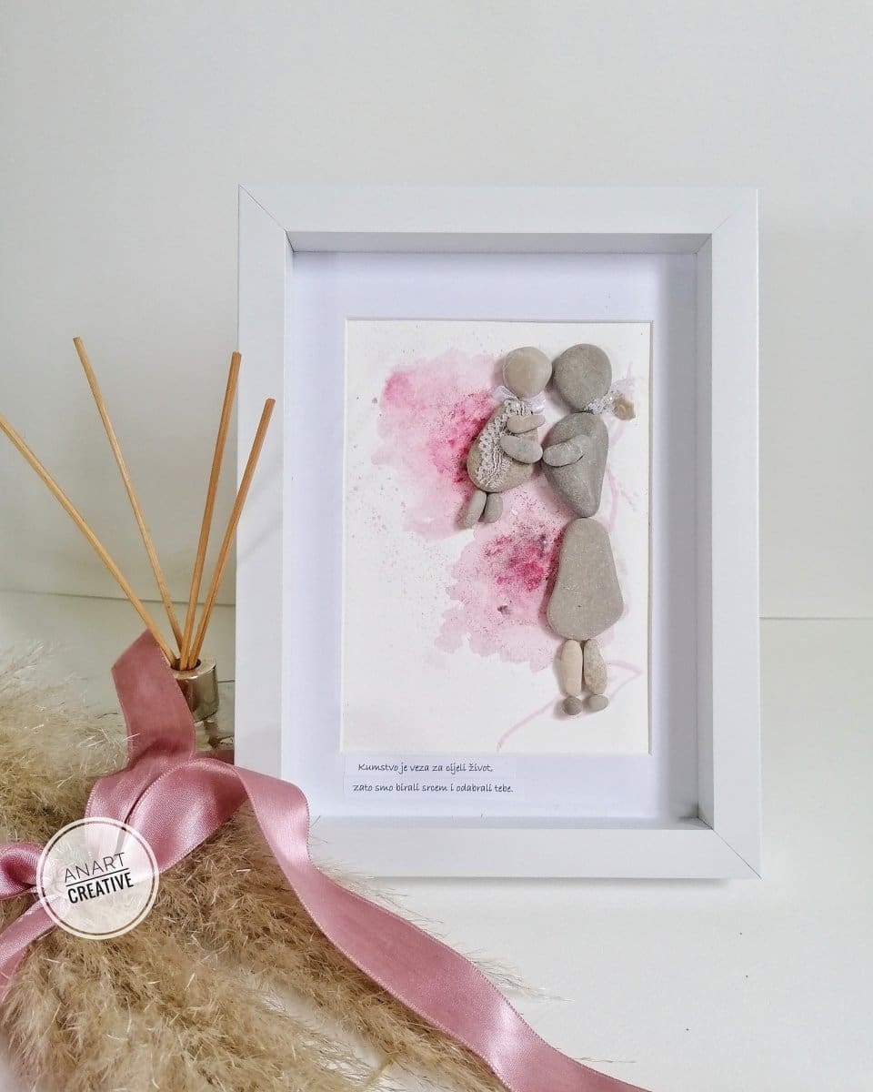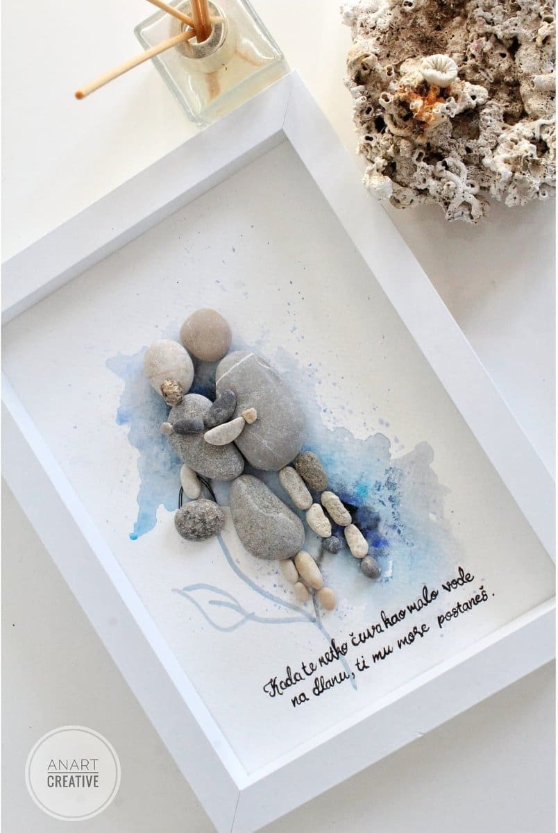 "Ideja o izradi okvira od oblutaka mi je došla spontano jedno ljeto na plaži. Pronašla sam dva oblutka koja su me podsjetila na dječja stopala, i odlučila prijateljici pokloniti za njenu bebu. Ona je bila oduševljena. Nakon toga počele su mi dolaziti nove ideje, malo sam istraživala tu umjetnost i polako su nastajala prava mala umjetnička djela.