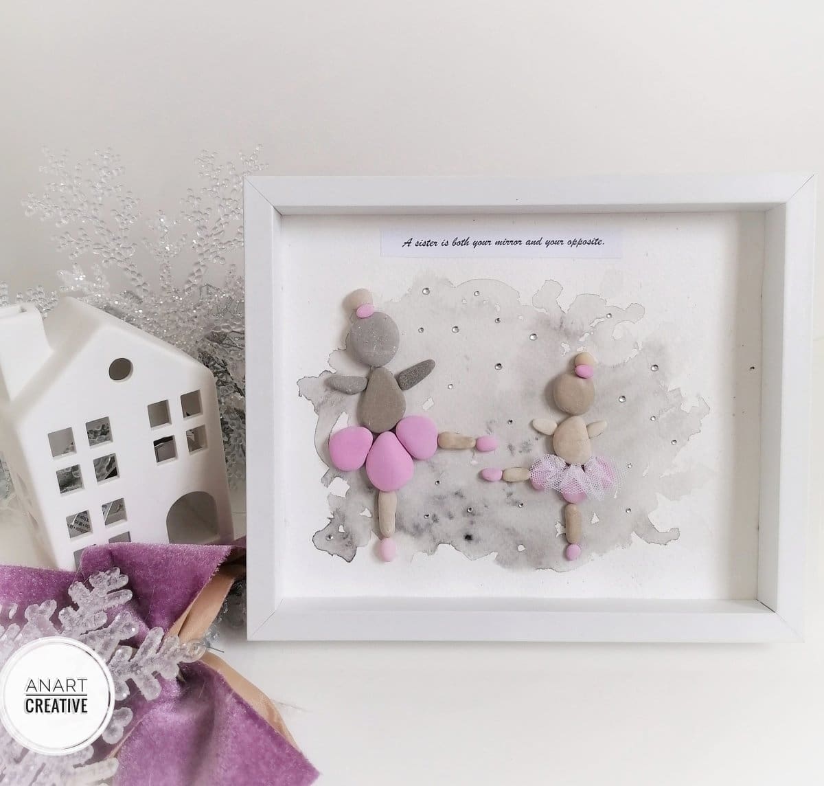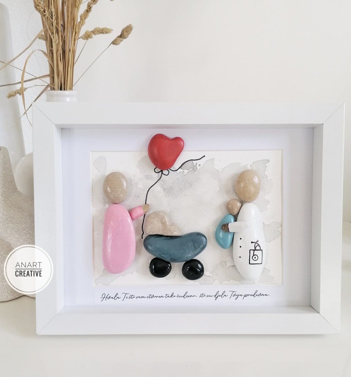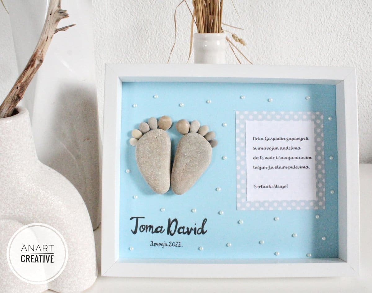 "Ideja o izradi okvira od oblutaka mi je došla spontano jedno ljeto na plaži. Pronašla sam dva oblutka koja su me podsjetila na dječja stopala, i odlučila prijateljici pokloniti za njenu bebu. Ona je bila oduševljena. Nakon toga počele su mi dolaziti nove ideje, malo sam istraživala tu umjetnost i polako su nastajala prava mala umjetnička djela.