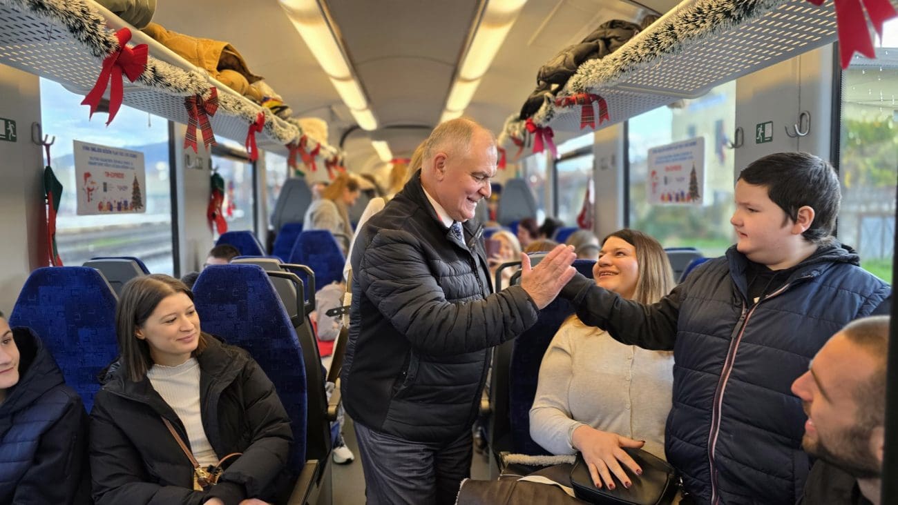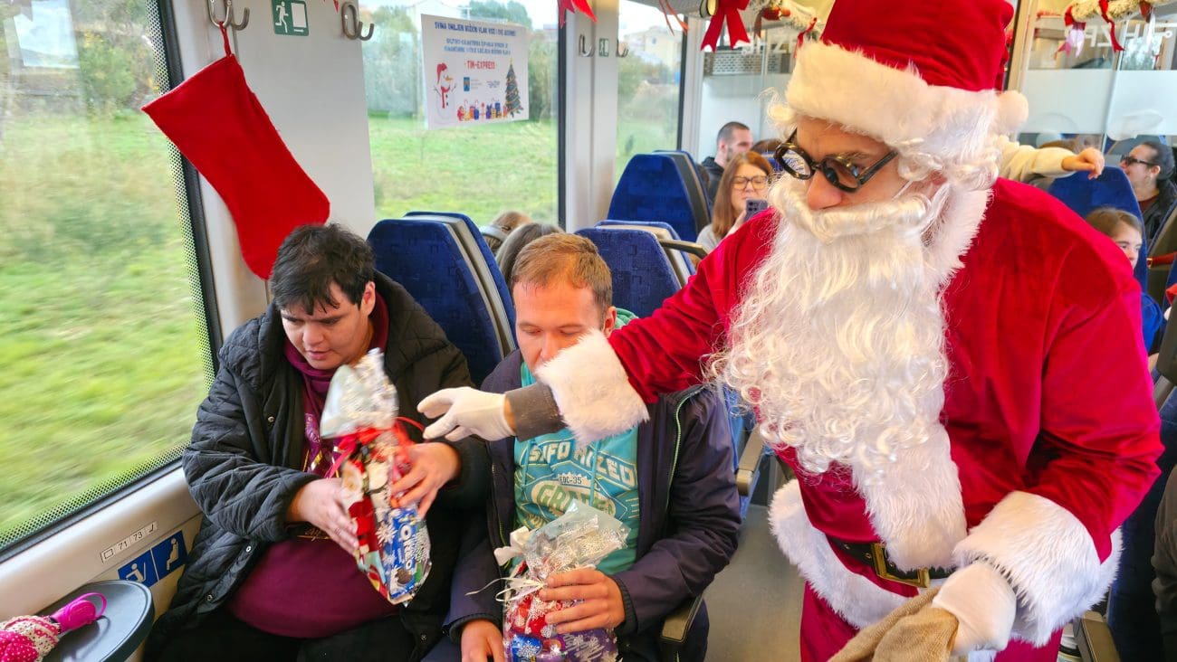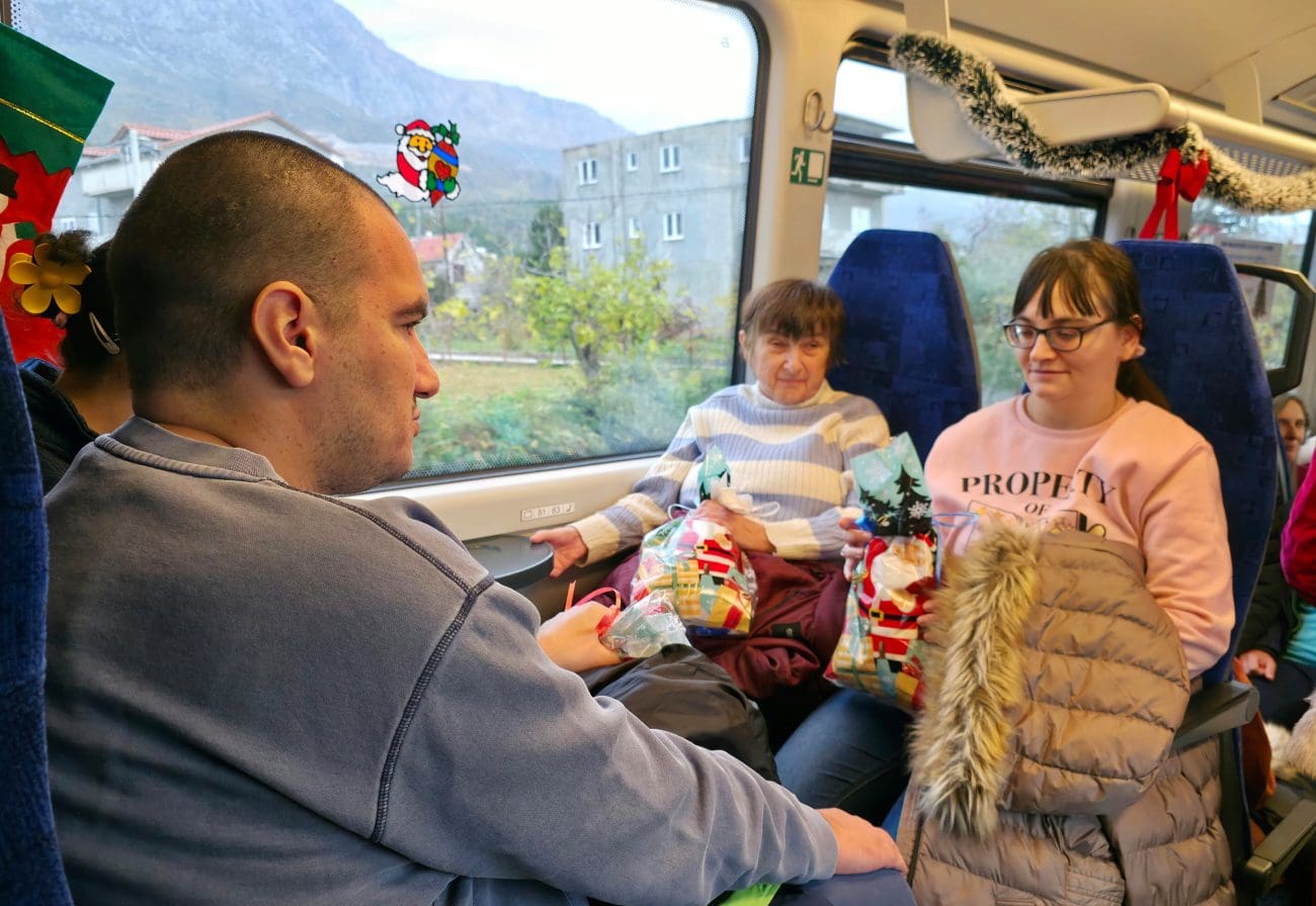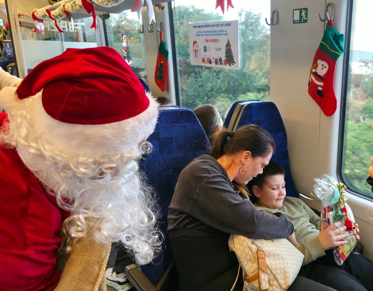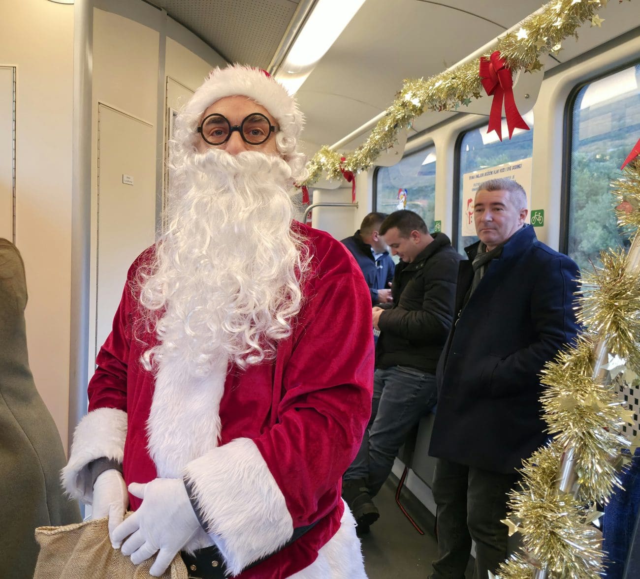 U okićenom vlaku našao se i župan Splitsko-dalmatinske županije Blaženko Boban te Djed Božićnjak koji je uveseljavao i darivao djecu. Ova humanitarna vožnja dio je suradnje Hrvatskih željeznica i županije Splitsko-dalmatinske.