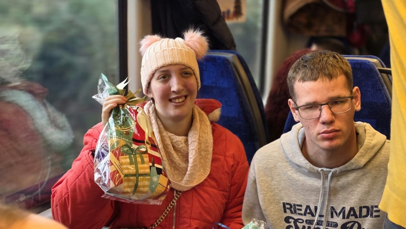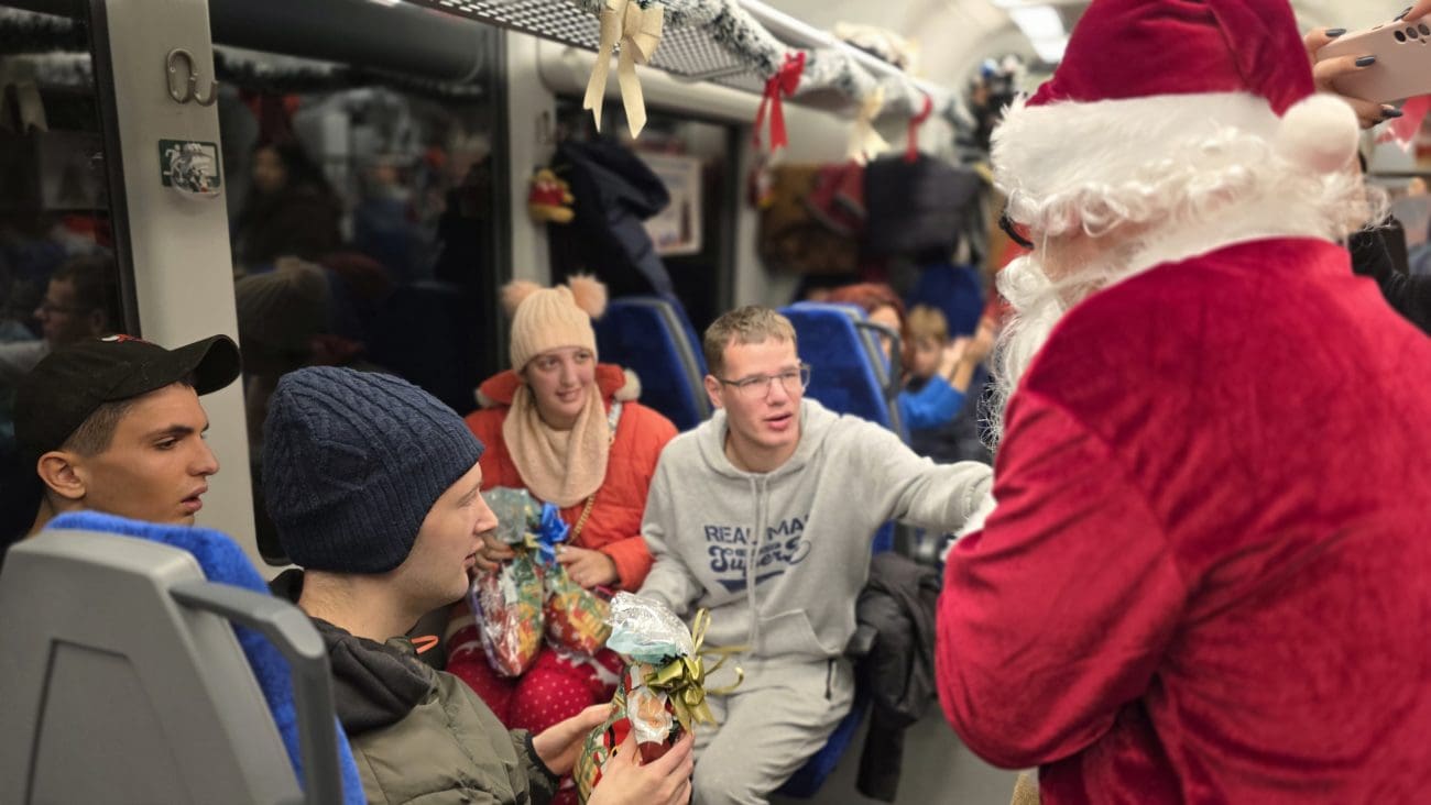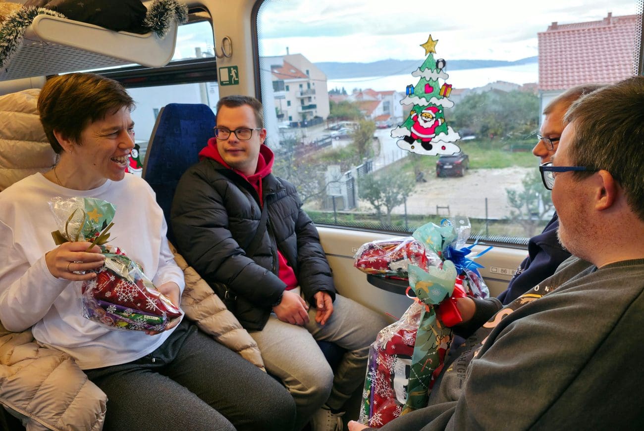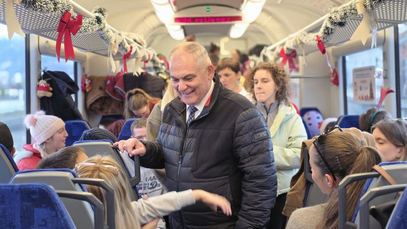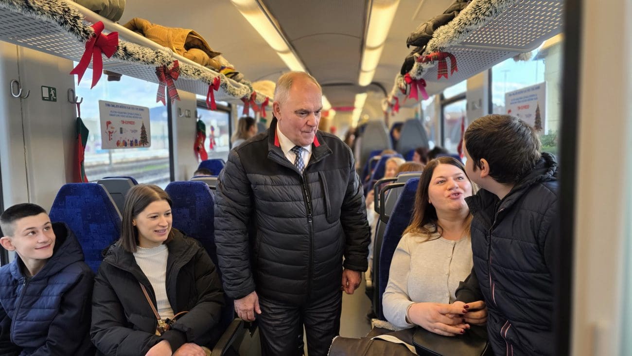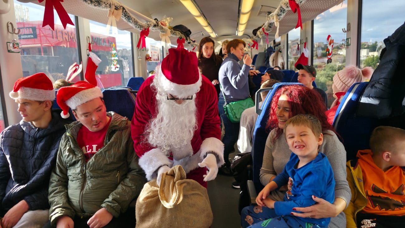 U okićenom vlaku našao se i župan Splitsko-dalmatinske županije Blaženko Boban te Djed Božićnjak koji je uveseljavao i darivao djecu. Ova humanitarna vožnja dio je suradnje Hrvatskih željeznica i županije Splitsko-dalmatinske.