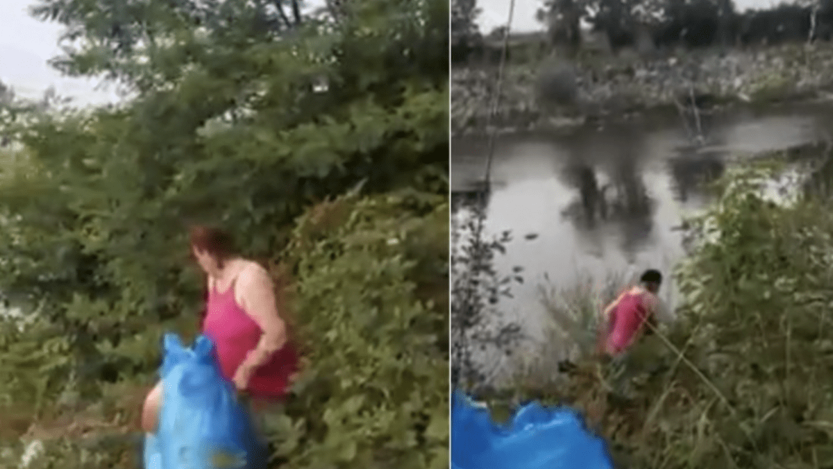 Žena se spustila do obale gdje je bacila tri vreće smeća i pokupila ga.