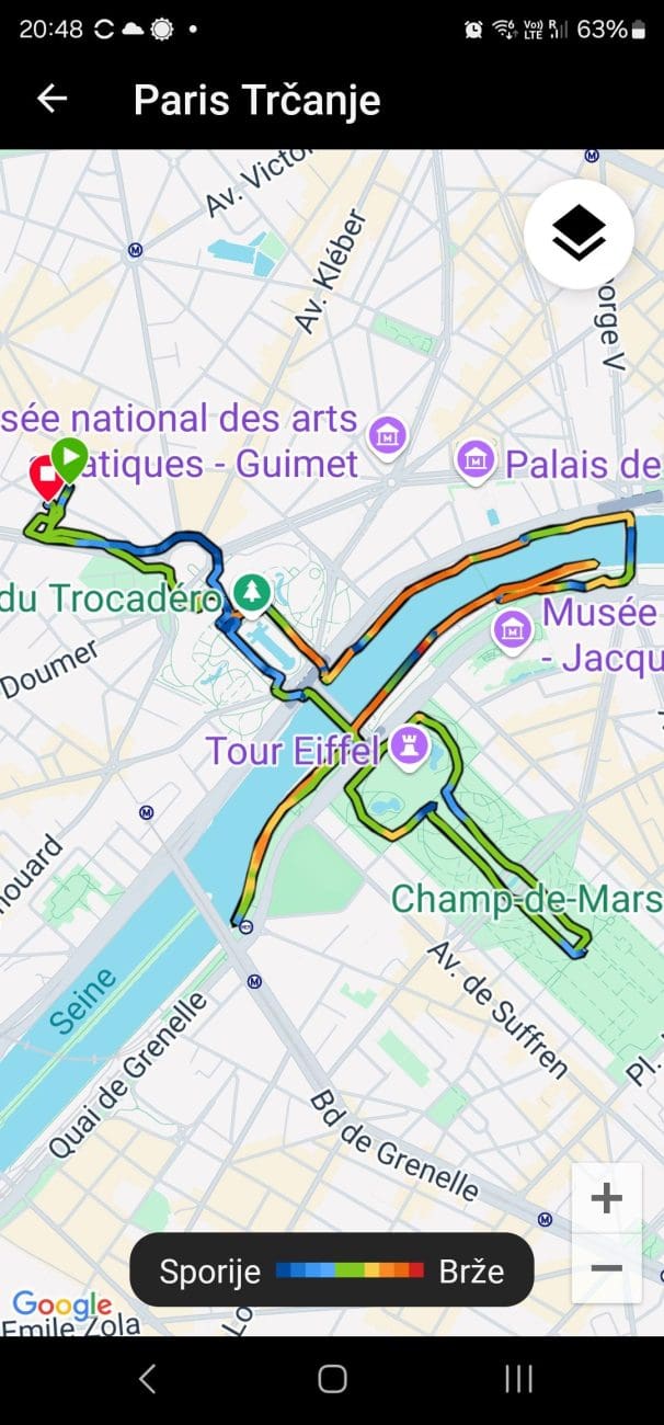 Nakon cjelodnevnog angažmana u OECD-u, Opara je iskoristio priliku za opuštajuću večernju trku. Prema njegovim riječima, „Evo me opet na punu uru, drugi dan trčanja u Parizu. Jedva sam dočeka opet trčat, napravit novu turu. Trčim uz Seinu, tu su brodovi, i planiram dodatnih nekoliko kilometara da ostvarim svojih osam.“ Tijekom trke, koja je protekla uz Seinu, ispod impozantnog Tour Eiffela, preko Marsovog polja i pored Trocadera, prešao je 7,5 km, s namjerom da ubrzo nadoknadi i pređe zadani cilj od 8 km.