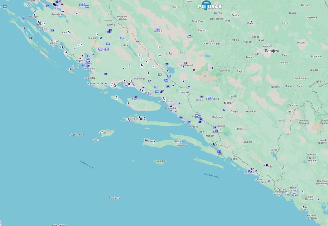 Prema podacima mjernih postaja, najviše kiše palo je u Stonu – čak 71,9 mm, dok je Svib kod Imotskog mjerio 70,4 mm, a Podprolog u dolini Neretve 63,3 mm.