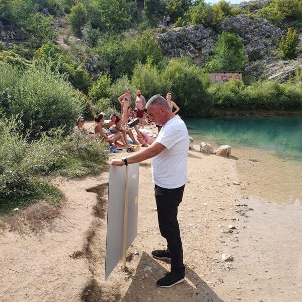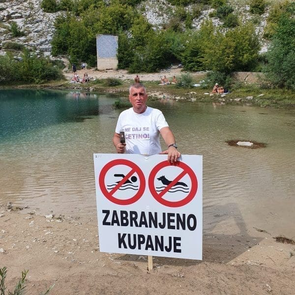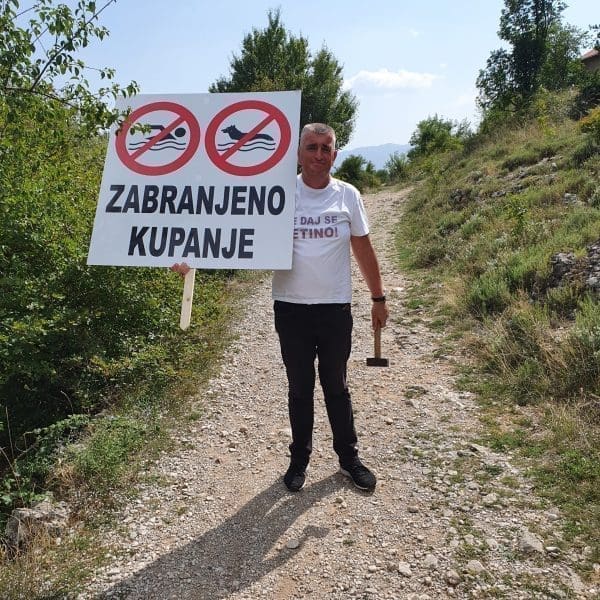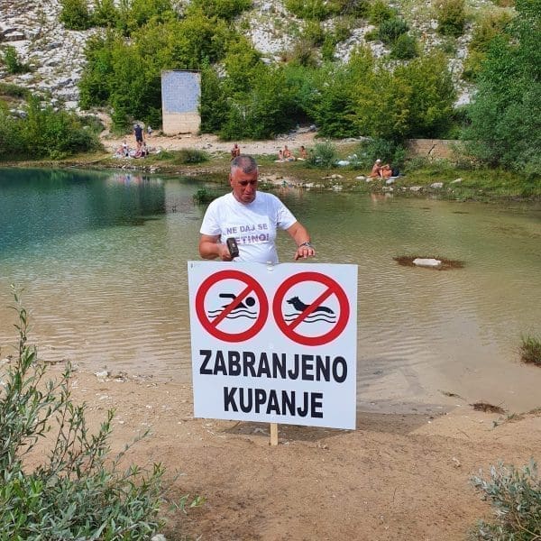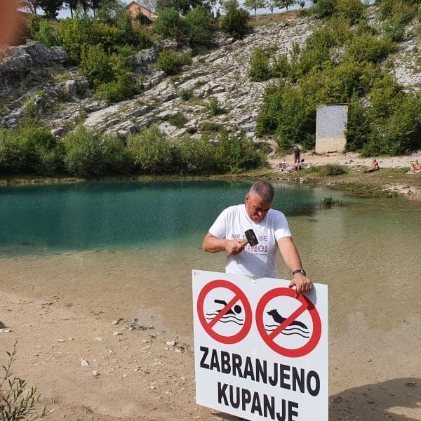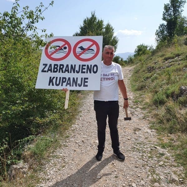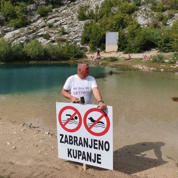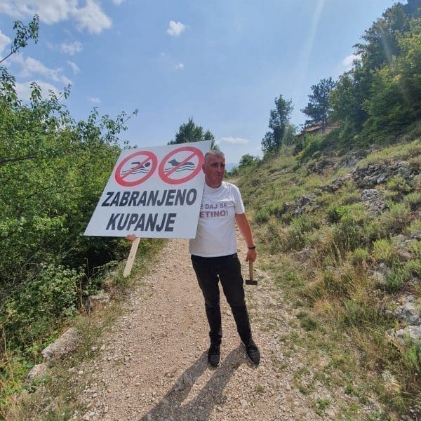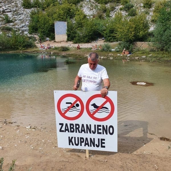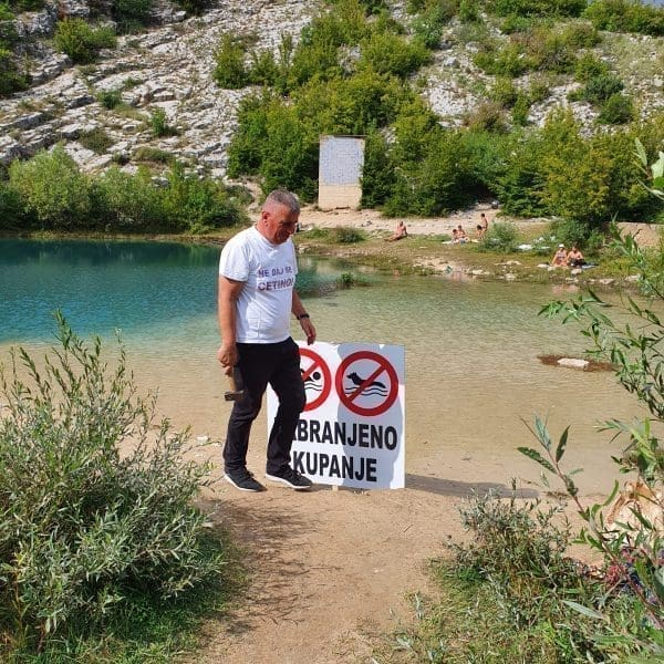 "Pogledajte dragi prijatelji, najljepši izvor svete nam rijeke Cetine, što su napravili od njega. Već su pojedinci postavili ploče, a postavit ću i ja sad jednu jer proglasiti ovo parkom prirode i dozvoliti da se radi što se hoće - to se ne smije", rekao je gradonačelnik Sinja Miro Bulj, koji je danas postavio znak zabrane kupanja na izvoru Cetine.