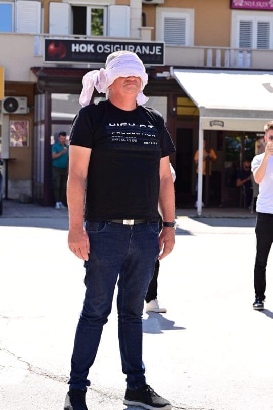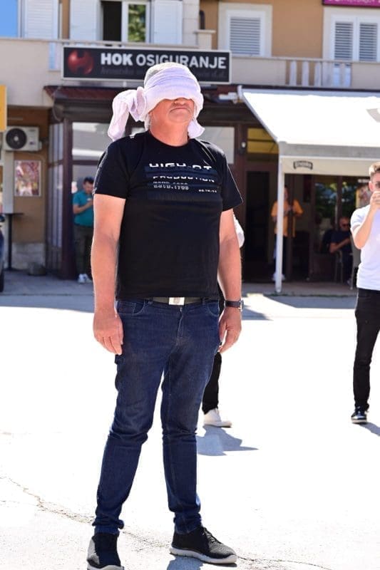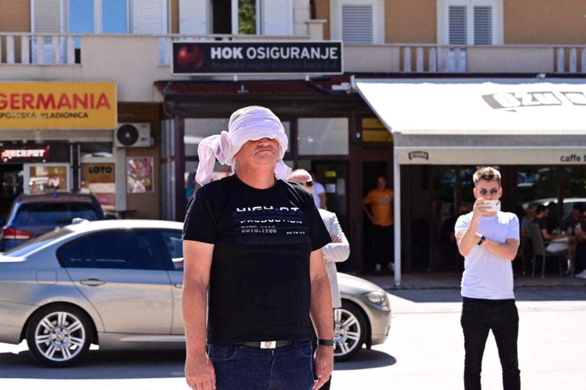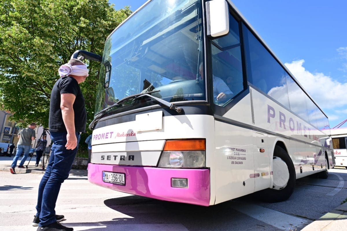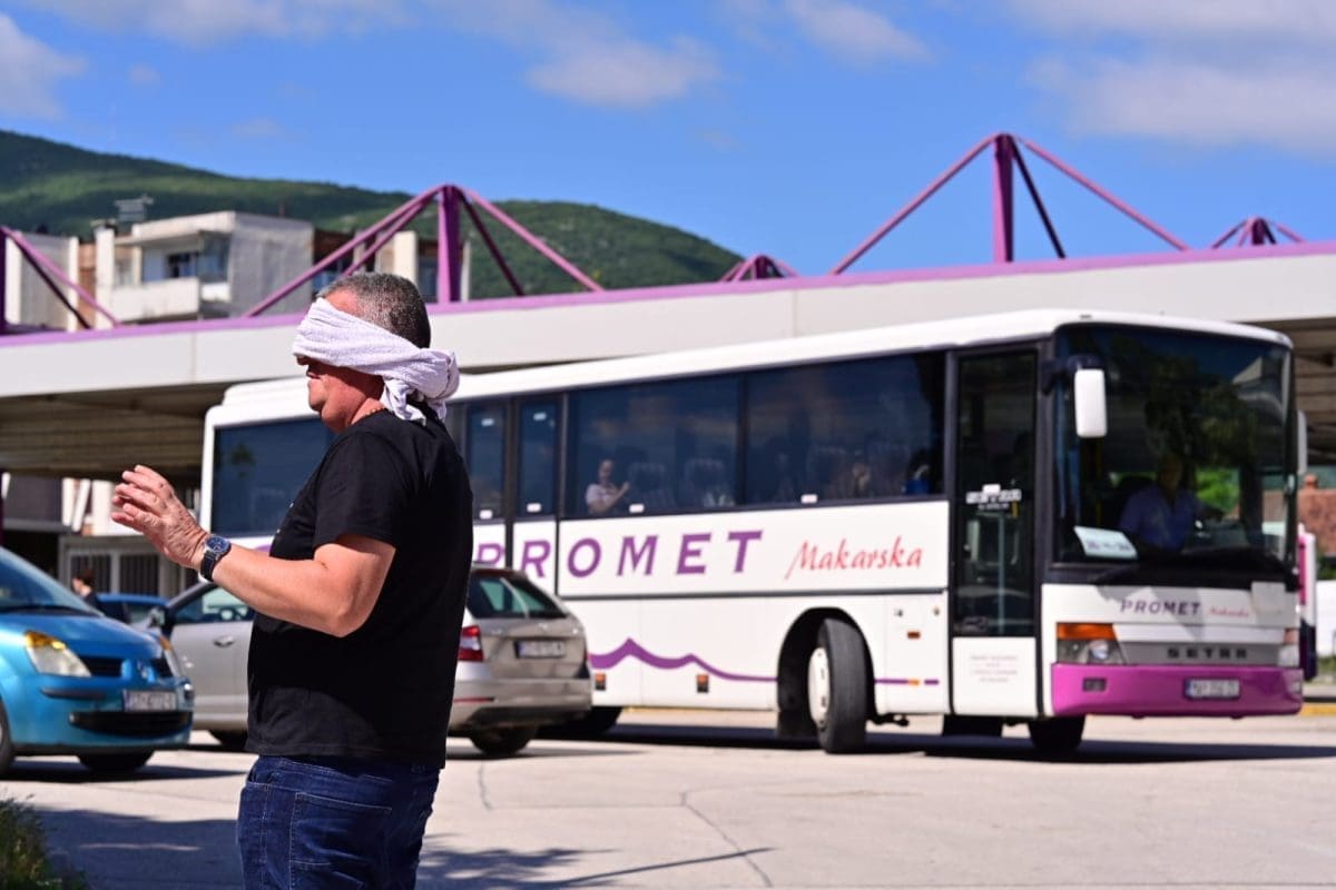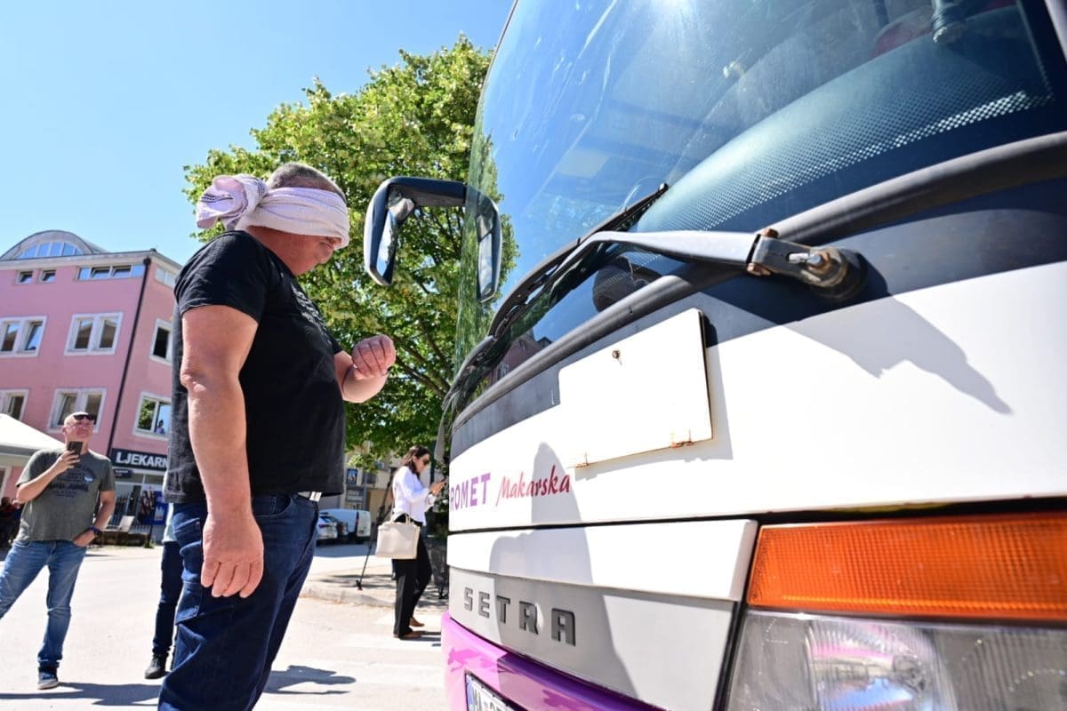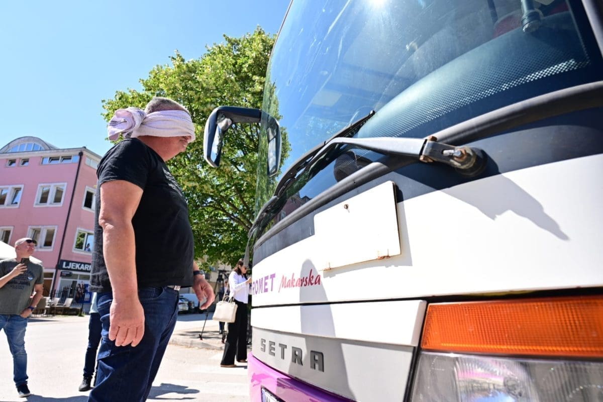 Miro Bulj, gradonačelnik Grada Sinja danas je u Sinju sazvao konferenciju za medije. No prije same konferencije dogodio se neočekivani trenutak. Naime, Bulj je s povezom preko očiju stao ispred autobusa Prometa Makarska te ga je zaustavio na raskrižju kod kolodvora.