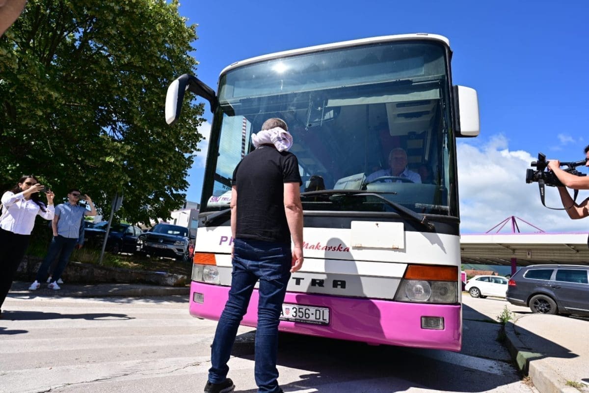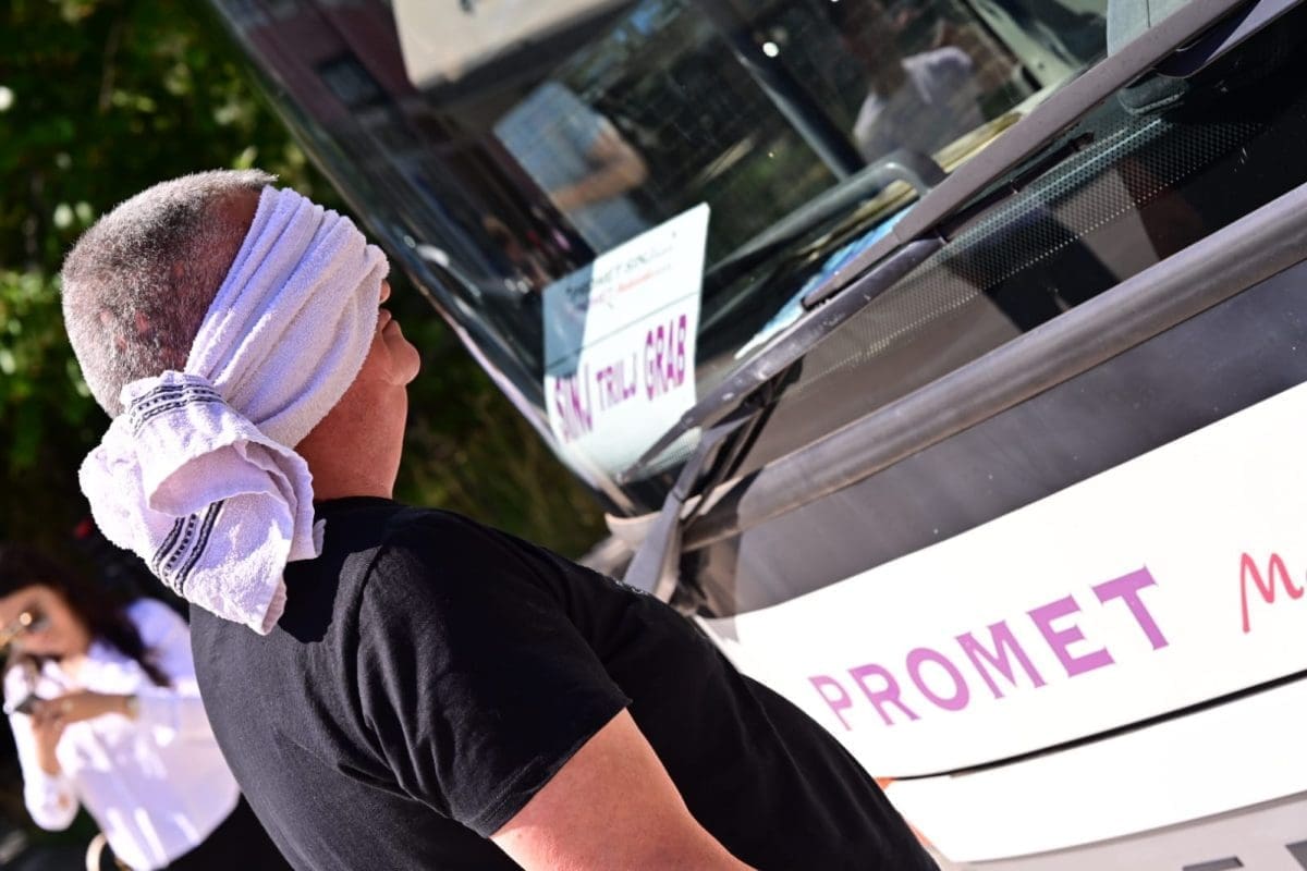 Vozač je trubio i negodovao, ali Bulj je stao ispred autobusa.