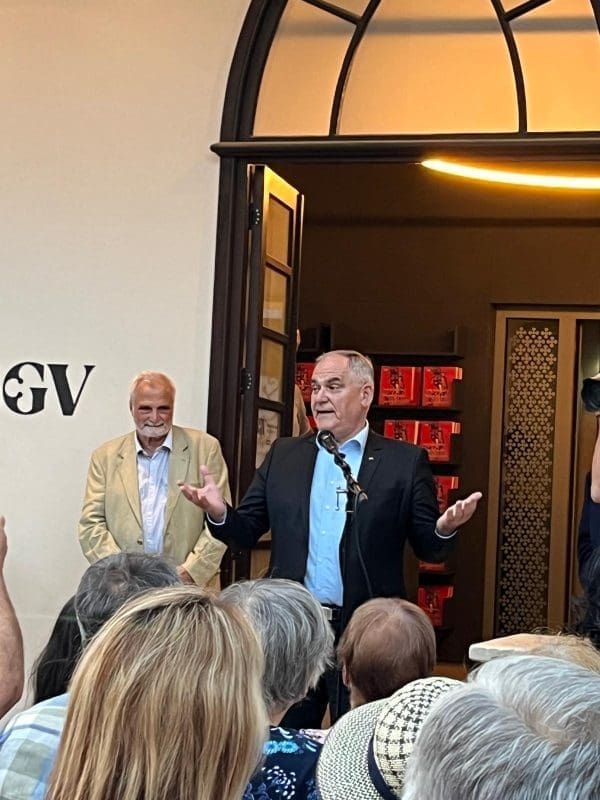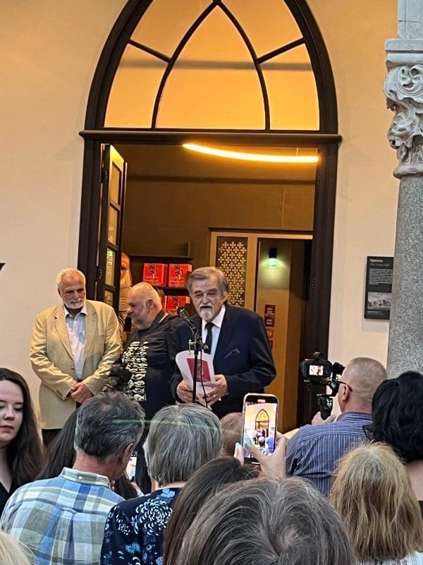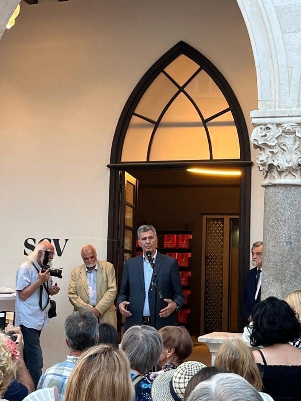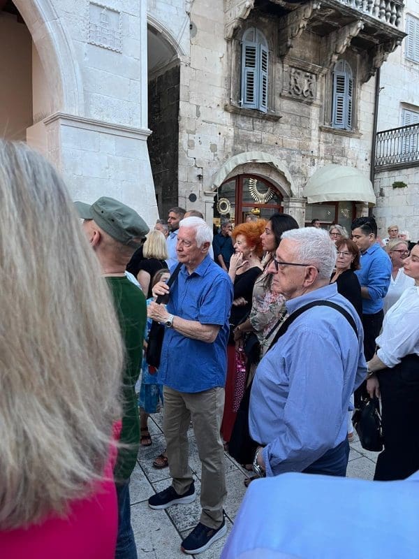 Na kraju se okupljenima obratio i sam autor: "Ovdje na splitskoj Pjaci, nekadašnjem Trgu Svetoga Lovre, susretao se sa Splićanima i veliki Marko Marulić. Ovu izložbu posvećujem njemu, ocu hrvatske pisane riječi."