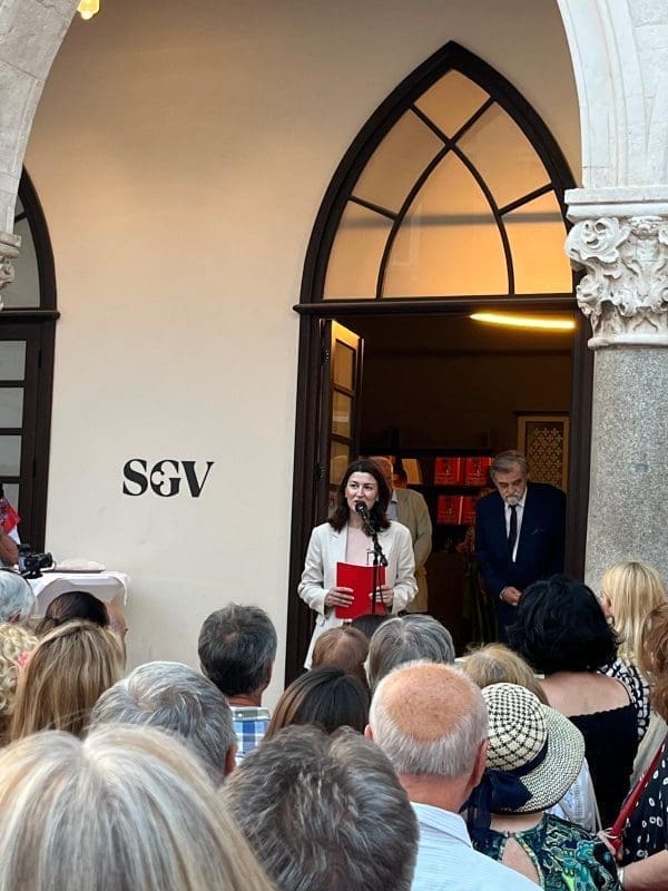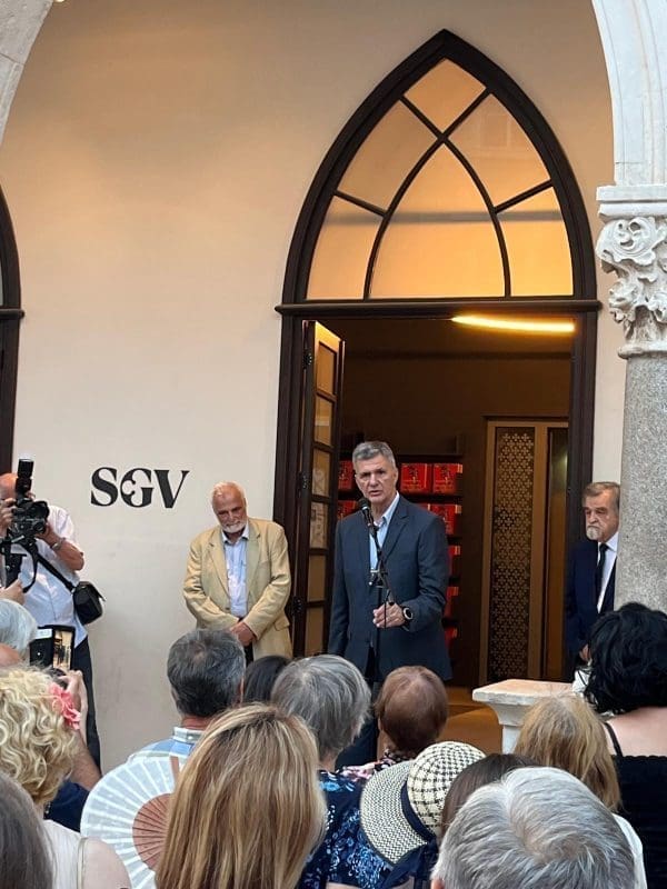 "Puno je ljudi večeras okupljeno ovdje, a imaju i razloga, jer ovo je podneblje koje rađa velike umjetnike. Ono što Josip Botteri Dini poklanja hrvatskom narodu zaslužilo je i ovaj prostor i sve vas ovdje. Moram zahvaliti obitelji Botteri i svim umjetnicima koji su sudjelovali u likovnoj koloniji i izložbi u Zagrebu povodom Svetoga Jeronima. Nema mjesta u Dalmaciji, bilo kroz crkvene vitraje ili njegova djela, gdje Botteri nije ostavio svoj rukopis, a njegova "Oda Dalmaciji" već godinama krasi Splitsko-dalmatinsku županiju."