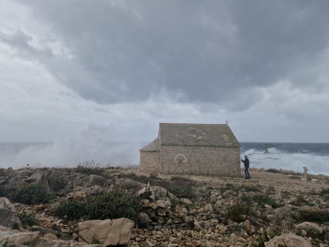 "Više desetaka puta bio sam na ovoj lokaciji za vrijeme olujnog juga. No nikada do danas nisam doživio da morska pjena prelazi cijeli poluotok i da nismo sigurni niti iza zidina crkvice", kazao nam je chaser Sebastian Galić.