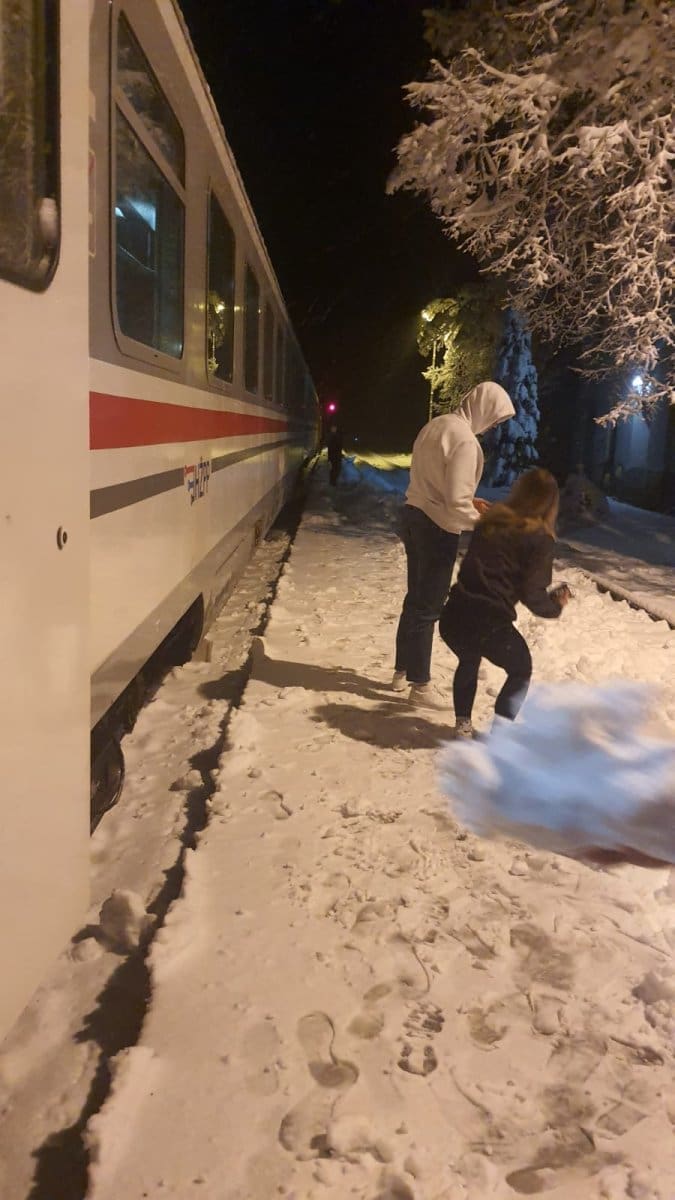 Dodao je da je u međuvremenu napadalo tridesetak centimetara snijega, zbog čega su mnogi putnici izašli iz vlaka na svježi zrak kako bi prekratili vrijeme. U trenutku čekanja, pred vlakom se odvijala prava zimska idila: