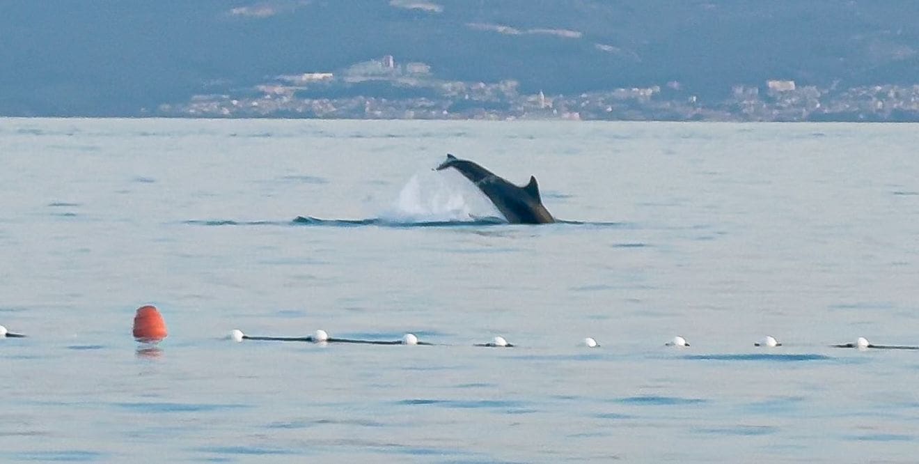 Danas poslijepodne brojni kupači i šetači na potezu između Stobreča i Strožanca imali su priliku svjedočiti nesvakidašnjem prizoru – svega nekoliko desetaka metara od obale pojavio se dupin.