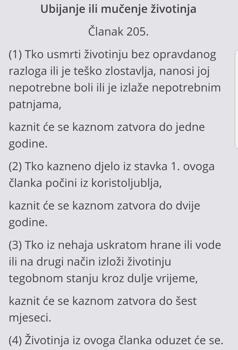 Snimka jadnika iz Postinja kako tuče pase kod Muća je tragična za dijeljenje, stoga dijelimo članak Kaznenog zakona koji predviđa kaznu do 1 godine zatvora i oduzimanje životinja.