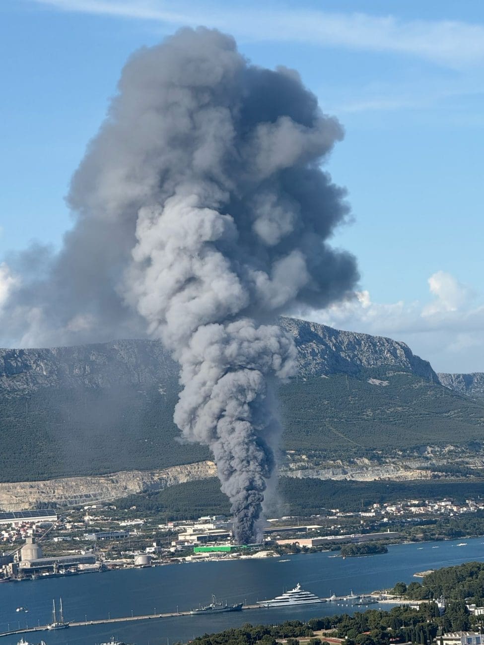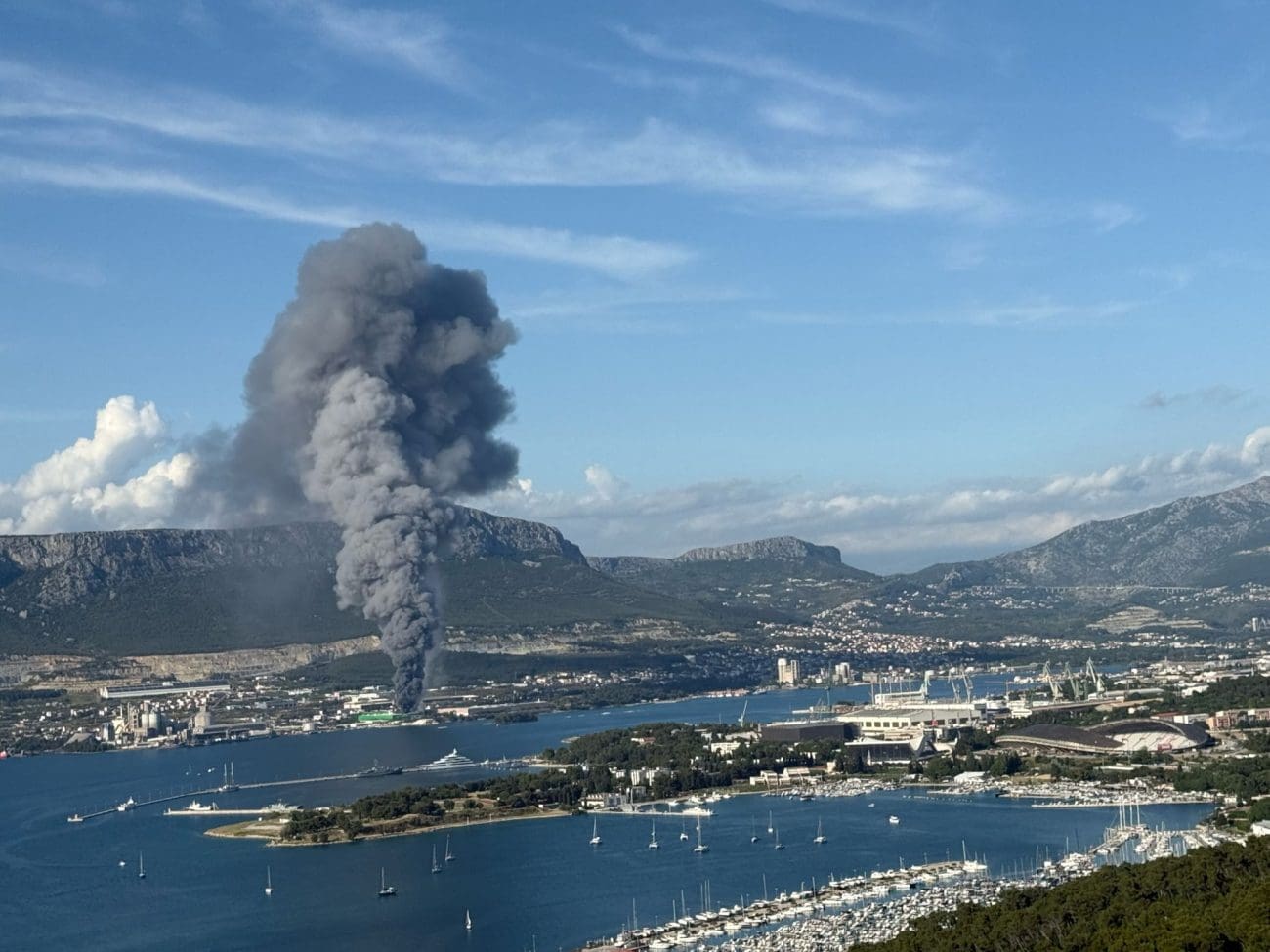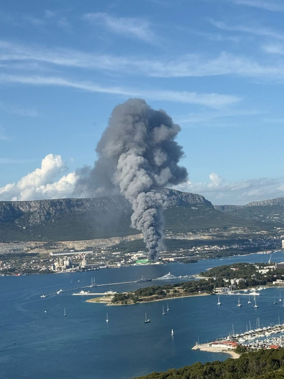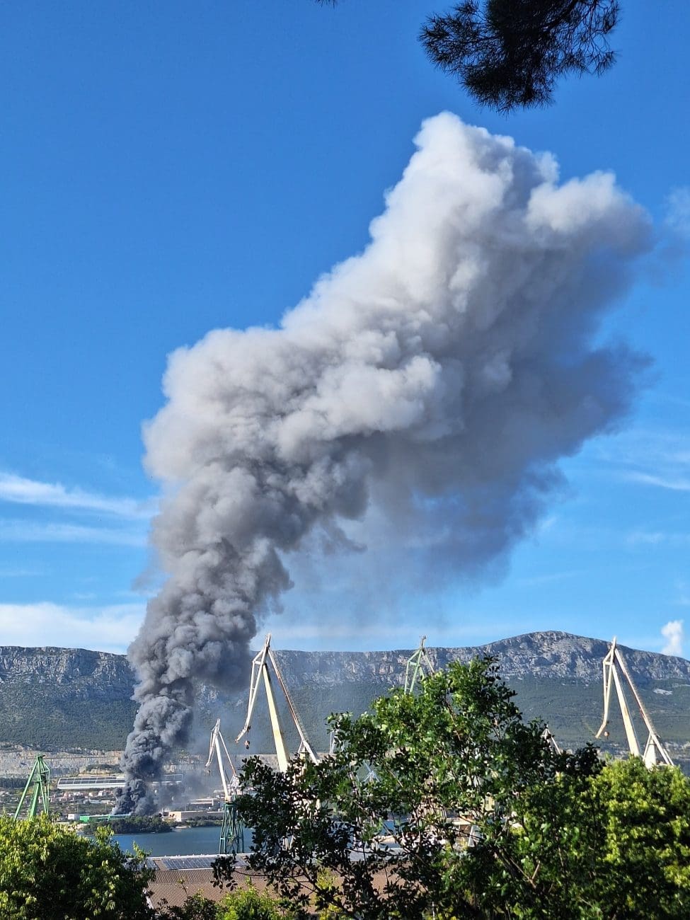 Kako je najavio Darko Maretić, zapovjednik operativnog područja Kaštela upravo vatrogascima pomaže grajfer kako bi se uklonili zapaljeni dijelovi objekta, poput krovnih ploča i metalnih struktura, čime se sprječavalo daljnje širenje vatre i omogućavao bolji pristup vatrogascima izvoru požara.