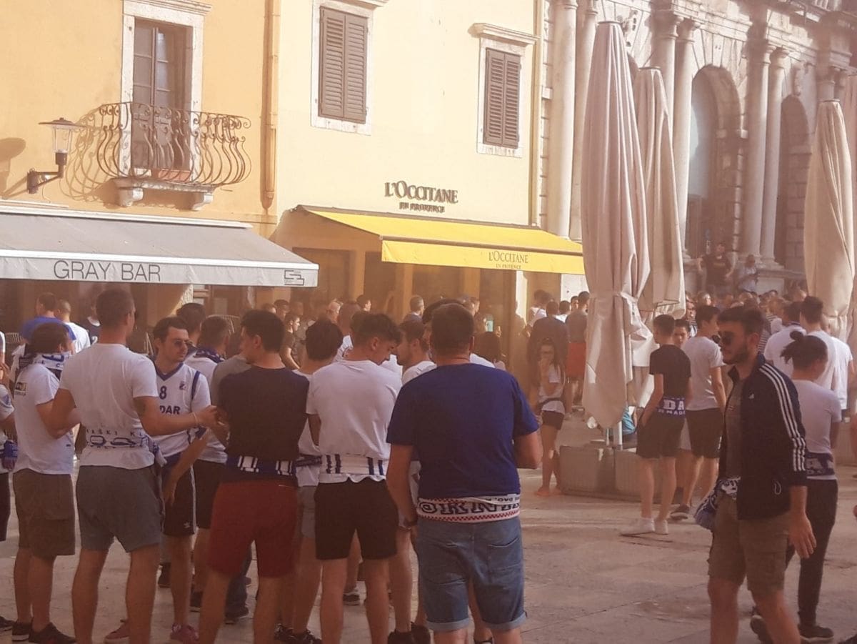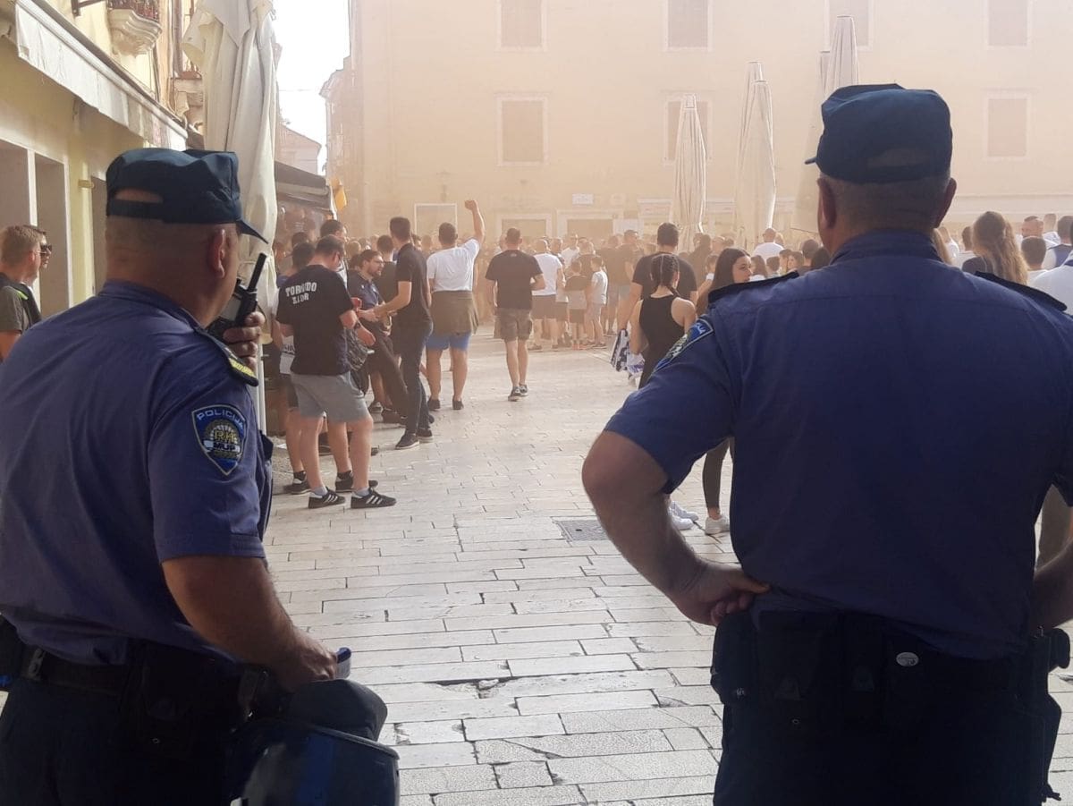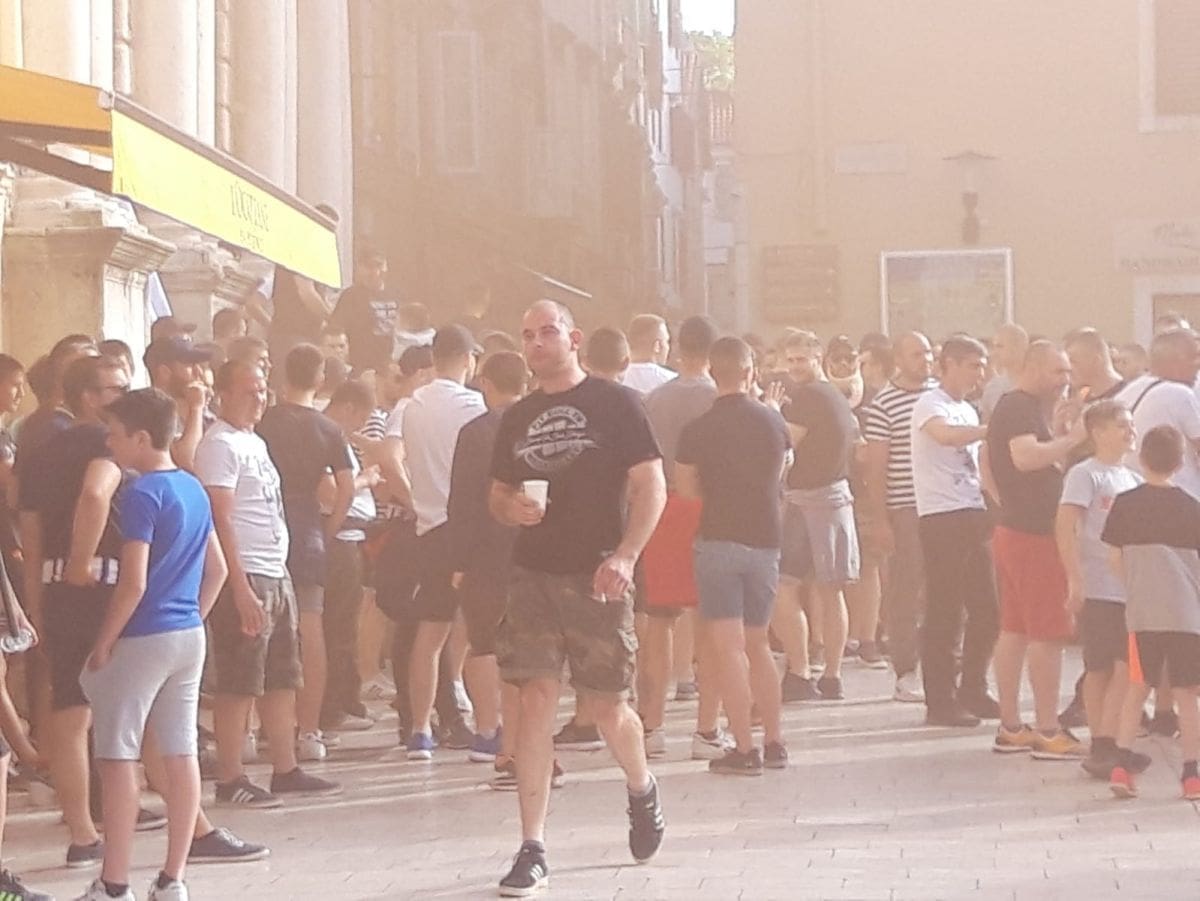 U centru Zadra, na Narodnom trgu navijači zadarskog kluba zagrijavaju atmosferu prije utakmice. Počeli su od 18.00 sati, gore dimne, bengalke, a uskoro će Tornado krenuti prema dvorani.