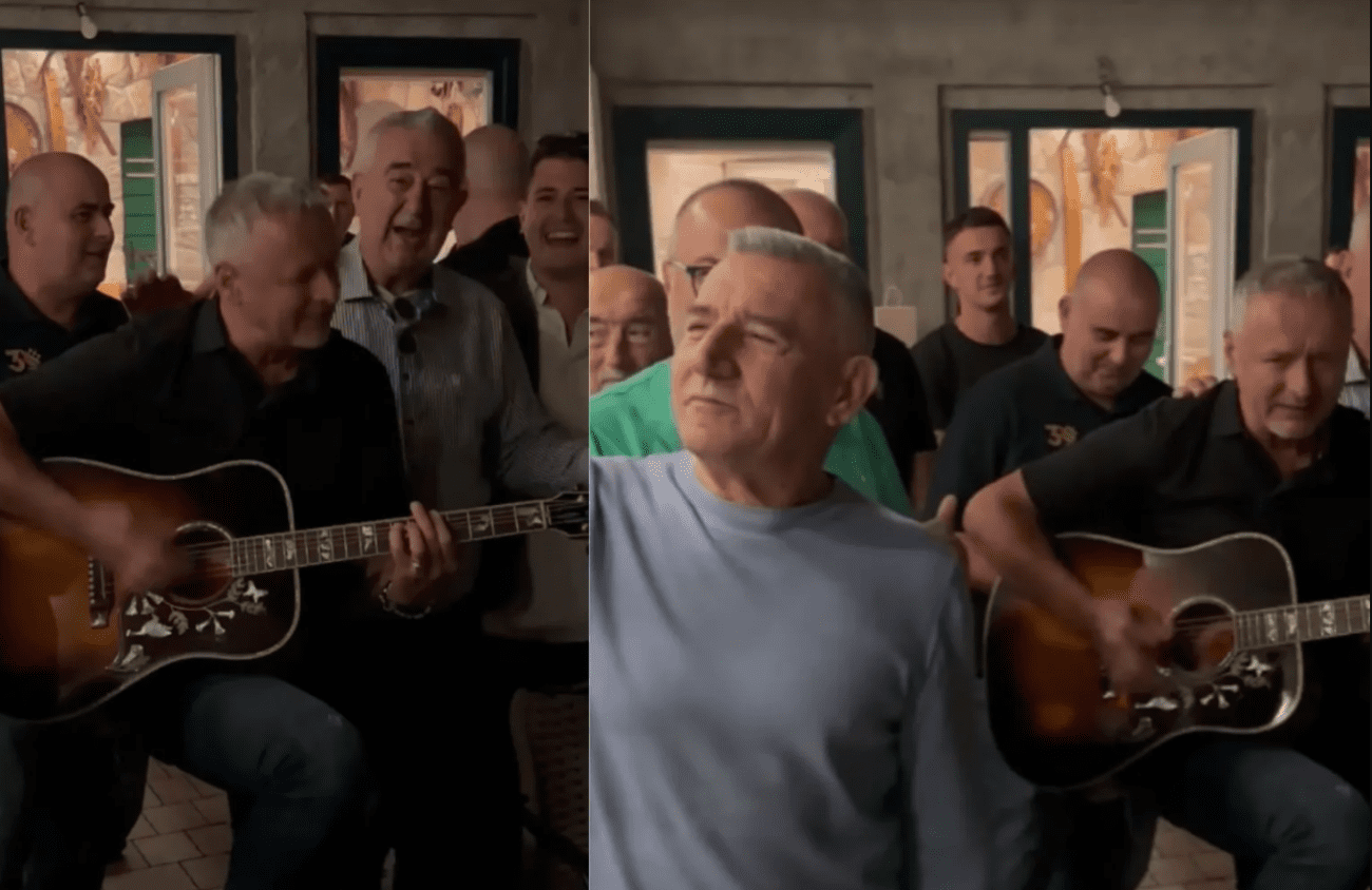 Na snimci koja se ubrzo proširila vidi se kako mu se u pjesmi pridružuju umirovljeni general Ante Gotovina i Pukovnik HOS-a Marko Skejo. Trojac je zajedno otpjevao stihove „ne boj se rogova ni lažnih bogova“ iz Thompsonove pjesme Ravnoteža, što je izazvalo oduševljenje okupljenih.