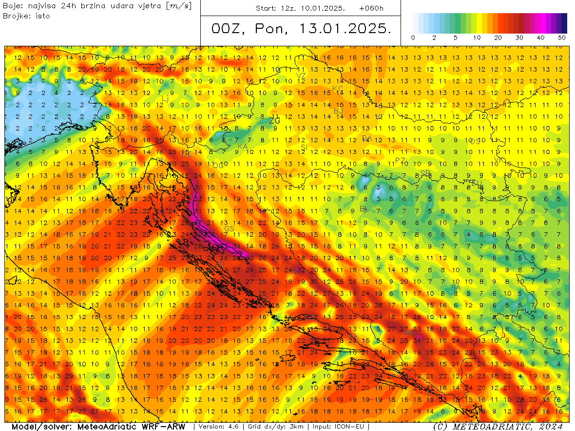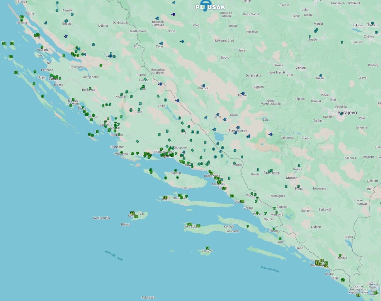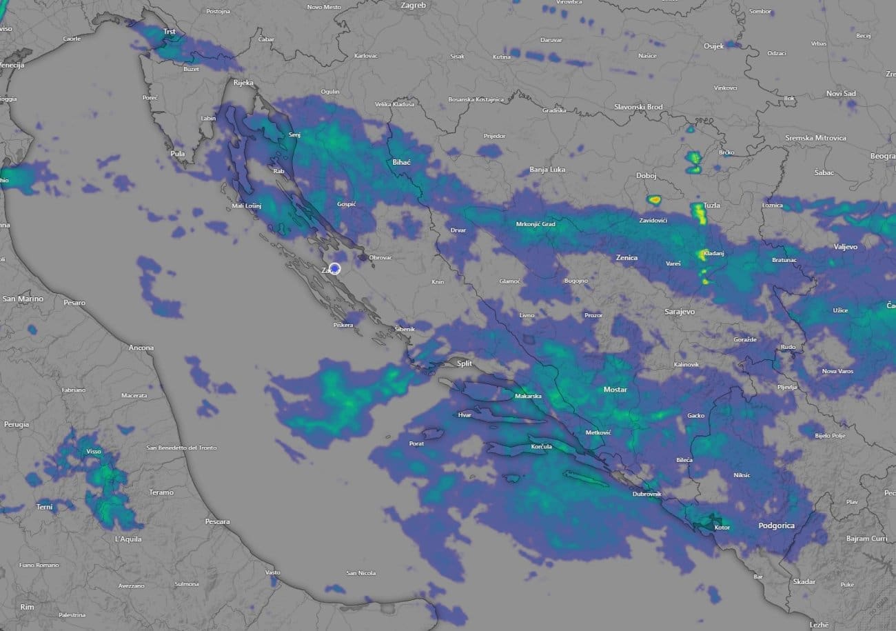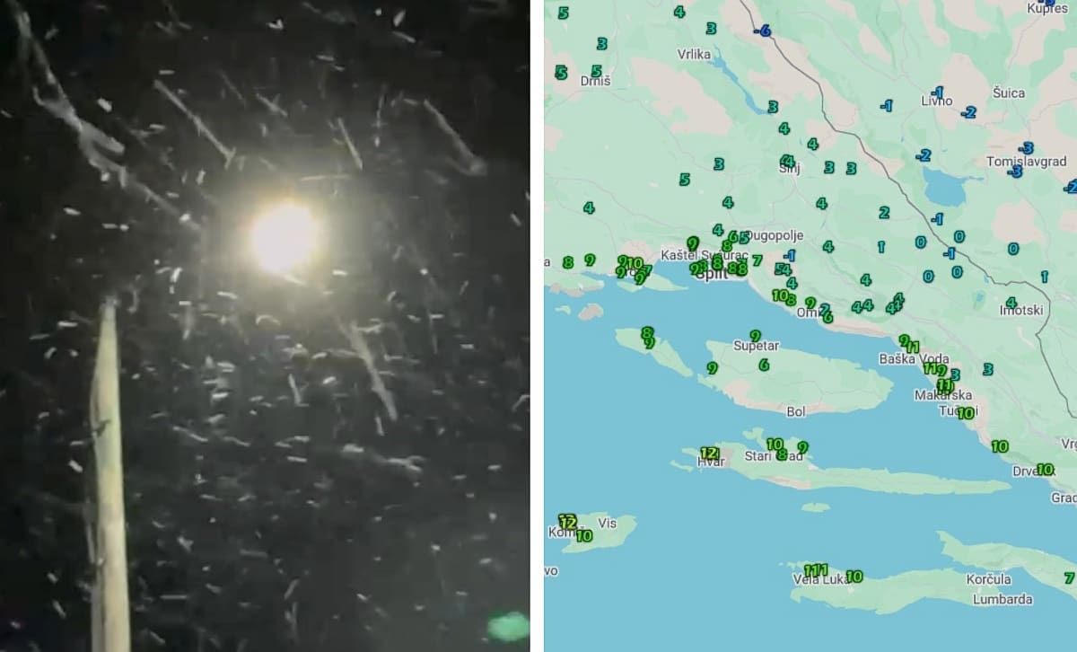 U 22 sata najtoplije je bilo na jugu Dalmacije, ponegdje do 12 stupnjeva Celzijusa. Najhladnije je bilo područjima zapadnije od Imotskog. Lovreć, Dolića Draga i Studenci u mreži Pljusak.com mjere 0°C, a Studenci -1°C. Upravo na ovom području večeras povremeno pada snijeg.