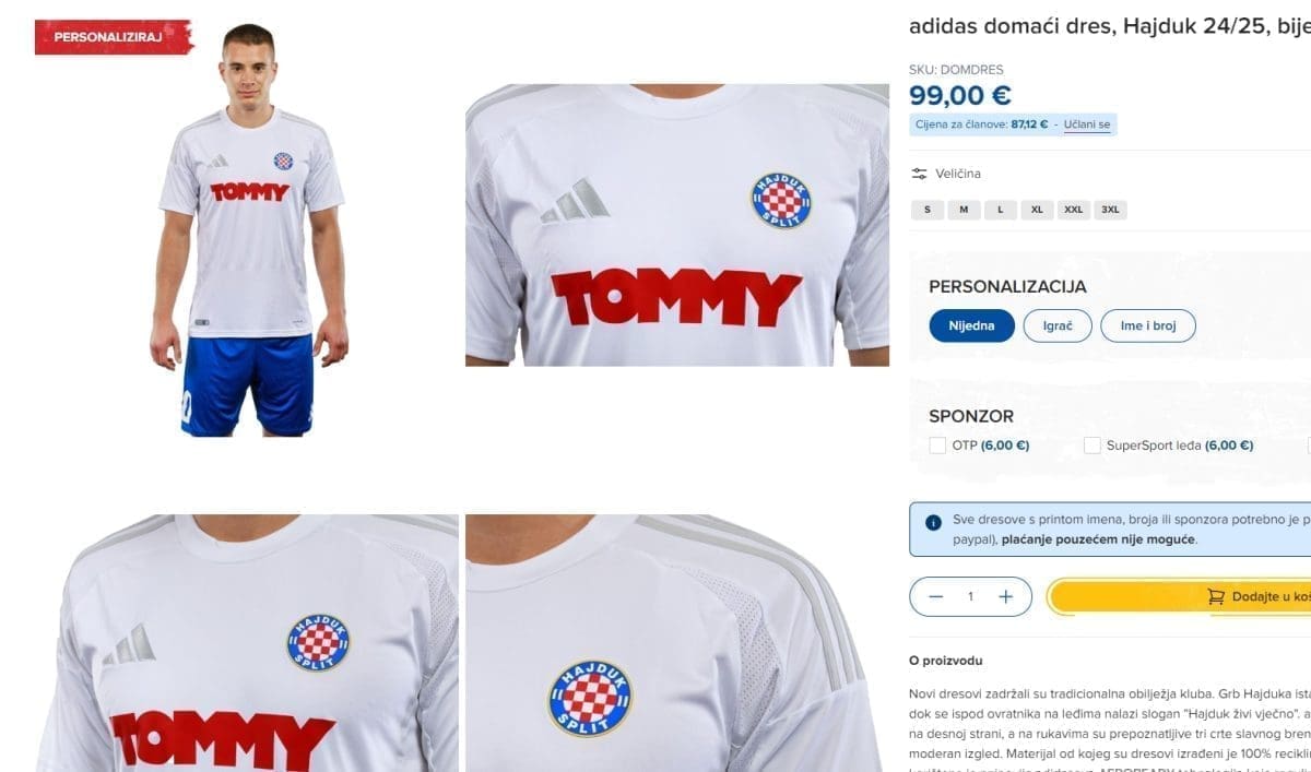 Kako se može vidjeti na Hajdukovom web shopu, cijena dresa je 99 sura.