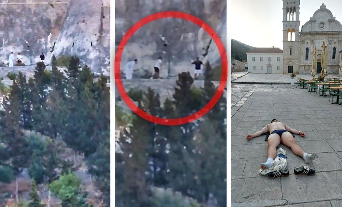 No tu turističkim "crticama" dana iz Hvara nije kraj. Jedan stanovnik ovog grada oko 5:30 proteklog jutra snimio je tri strana turista u ranojutarnjim aktivnostima. No, nije to bilo ništa za pohvaliti se, naprotiv. Trojac stranih turista popeo se do gradske tvrđave te su ispod Fortice kamenjem gađali rasvjetni stup. Na snimci se jasno čuje da im je to nekoliko puta pošlo za rukom. Možda bi se i Hvar trebao povesti primjerom Splitu koji je odnedavno uveo patrolu zaštitara po staroj gradskoj jezgri.