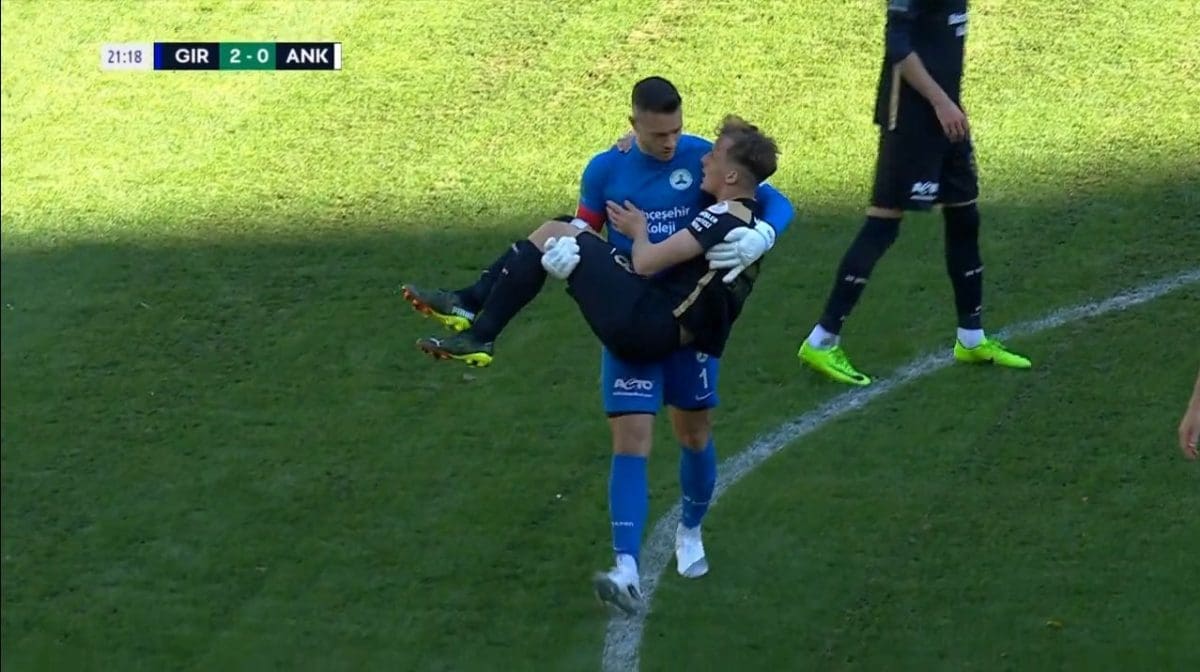 U utakmici turskog Kupa između Giresunspora i Ankare Demirspora u 20. minuti dogodila se scena kakvu ne viđamo često. Golman Ankare Avcu je ozlijeđenom Erolu Akdagu iz Giresunspora pomogao da izađe s terena tako da ga je nosio kao da je dijete.