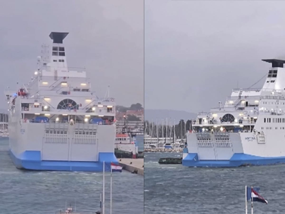 (VIDEO) IZVLAČIO GA REMORKER Talijanski trajekt uz olujno jugo naslonio se na obalu u splitskoj luci