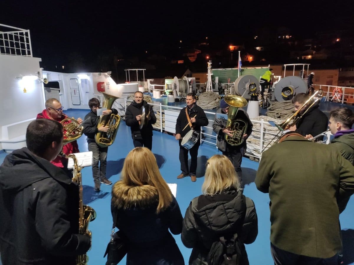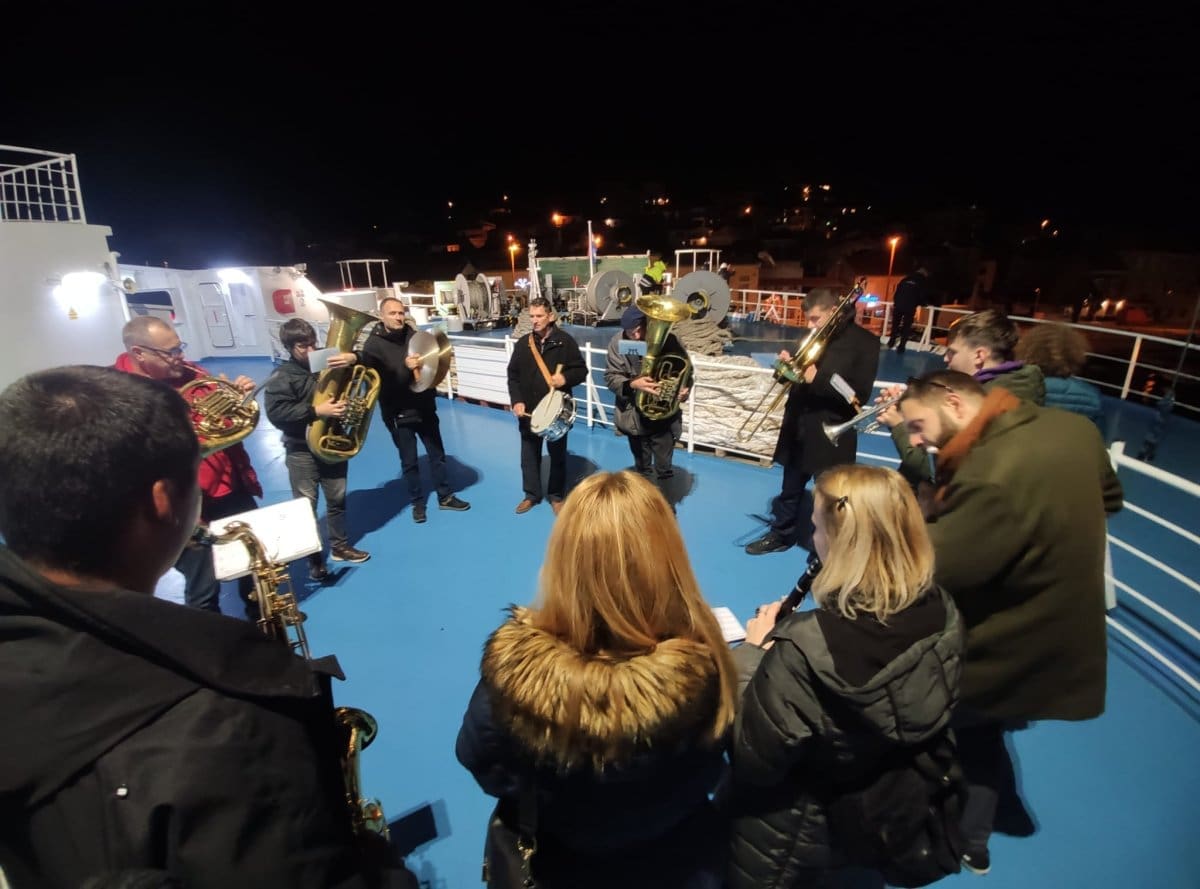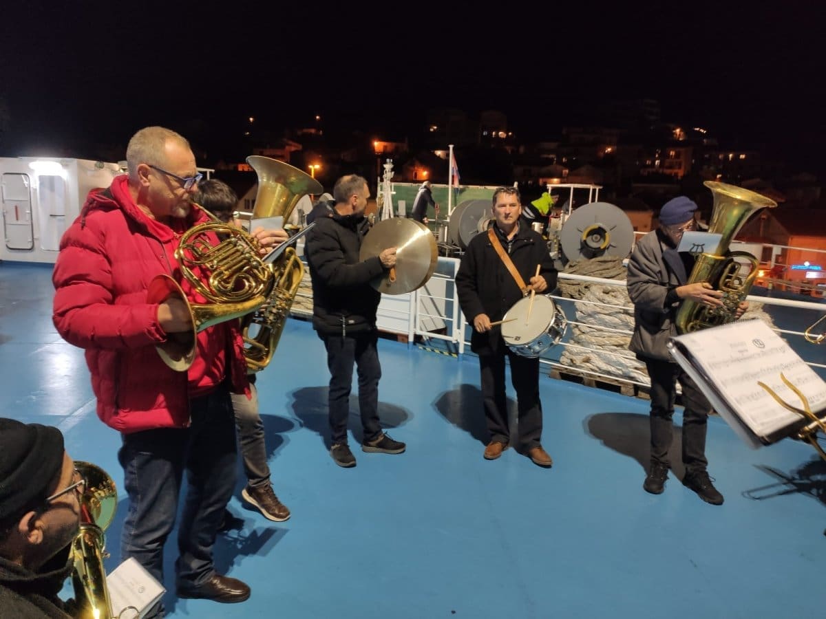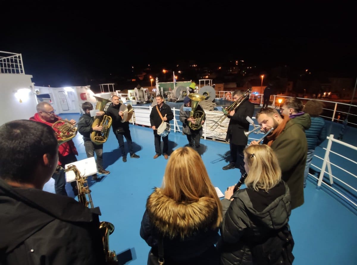 Na povratku s turneje, prilikom uplovljavanja u Vis na trajektu priredili su mali performans za sve okupljene putnike.