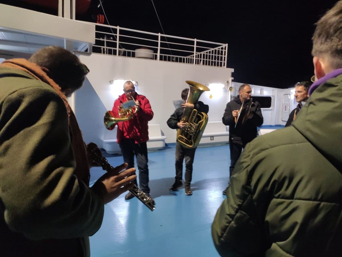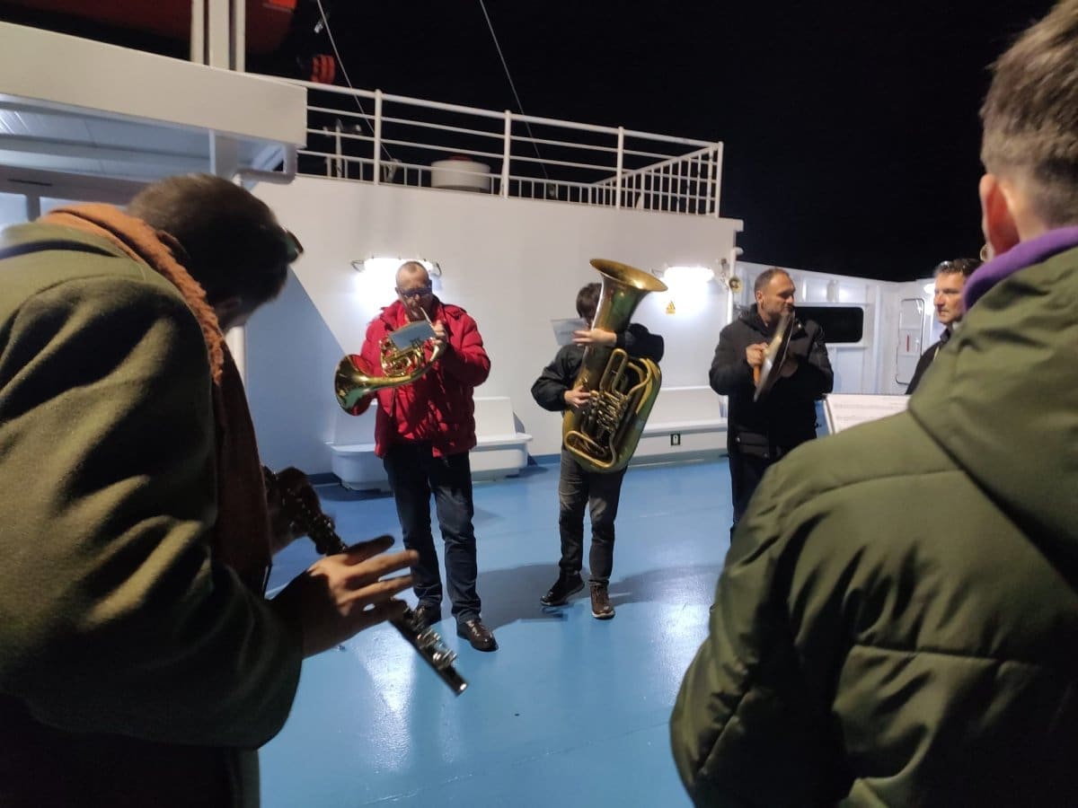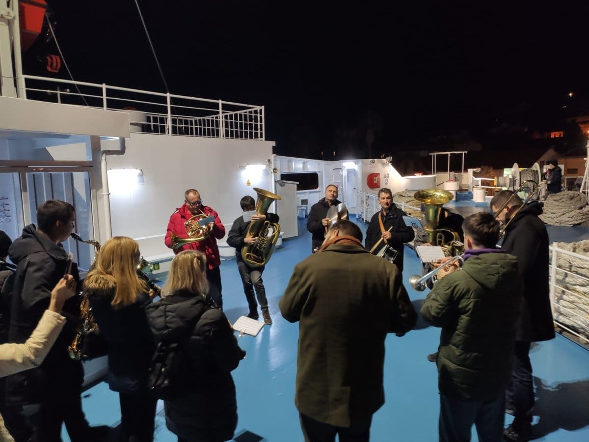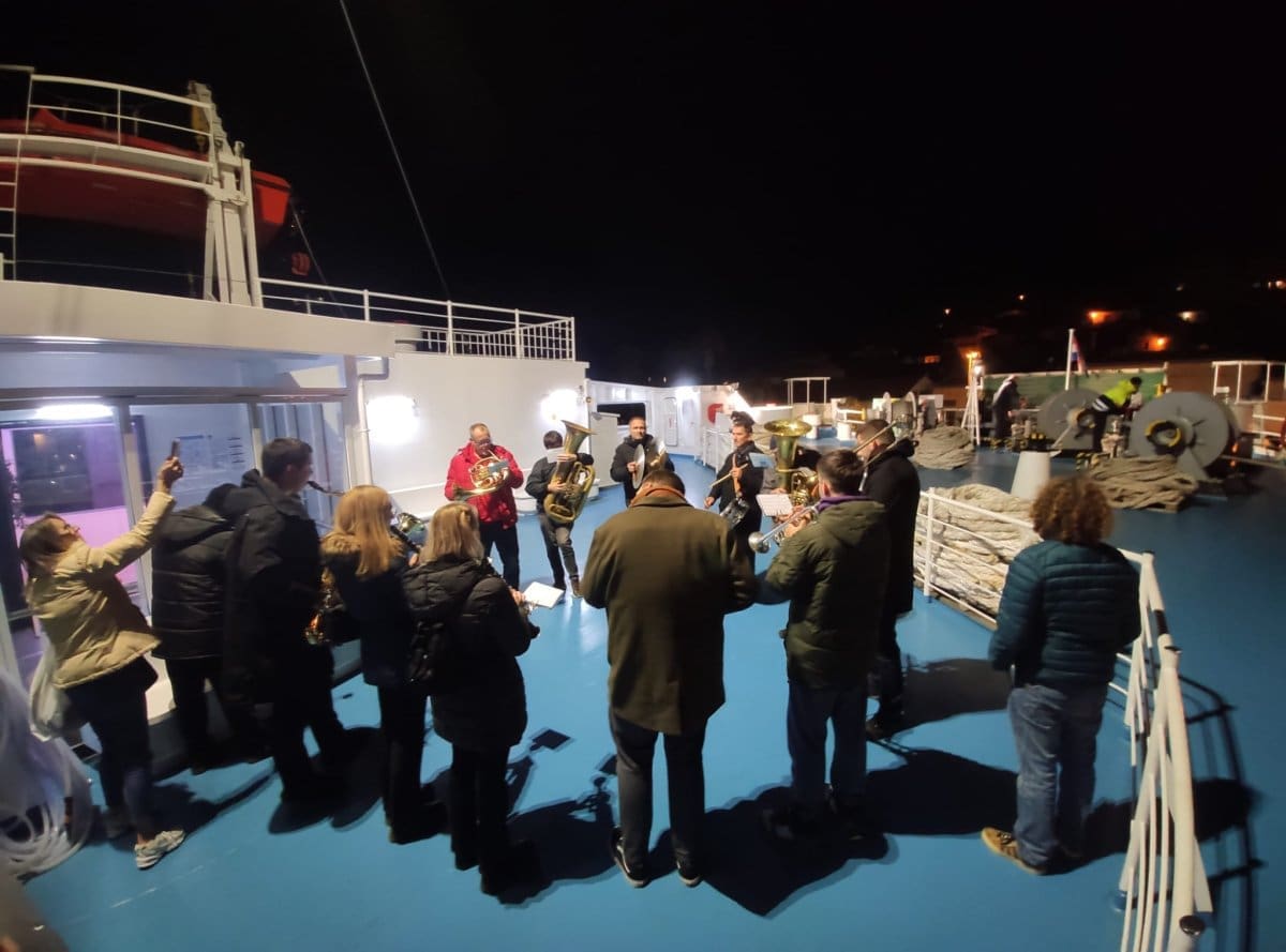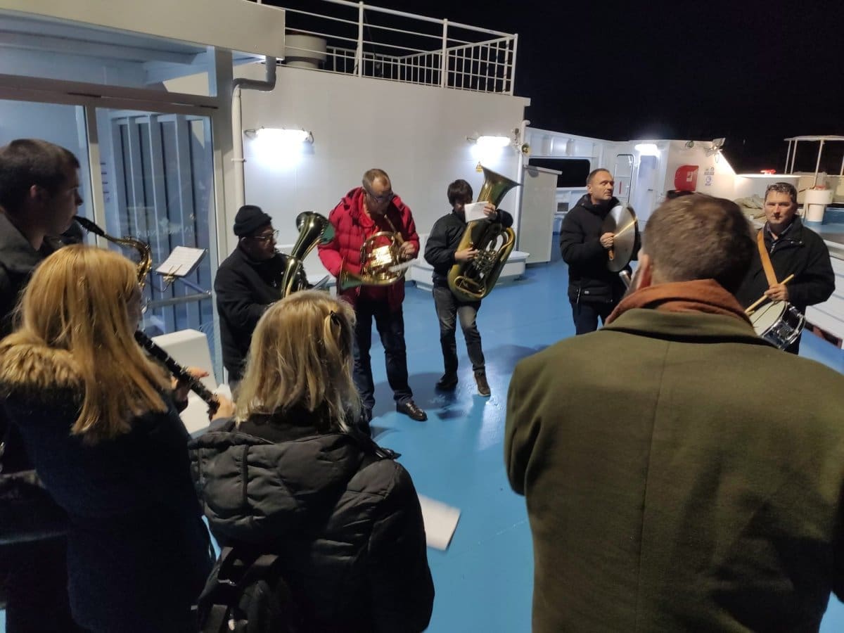 Na povratku s turneje, prilikom uplovljavanja u Vis na trajektu priredili su mali performans za sve okupljene putnike.