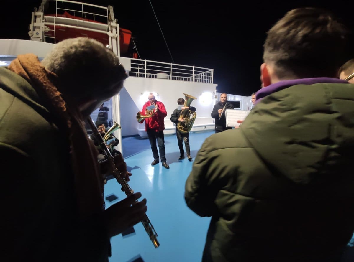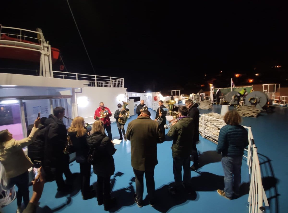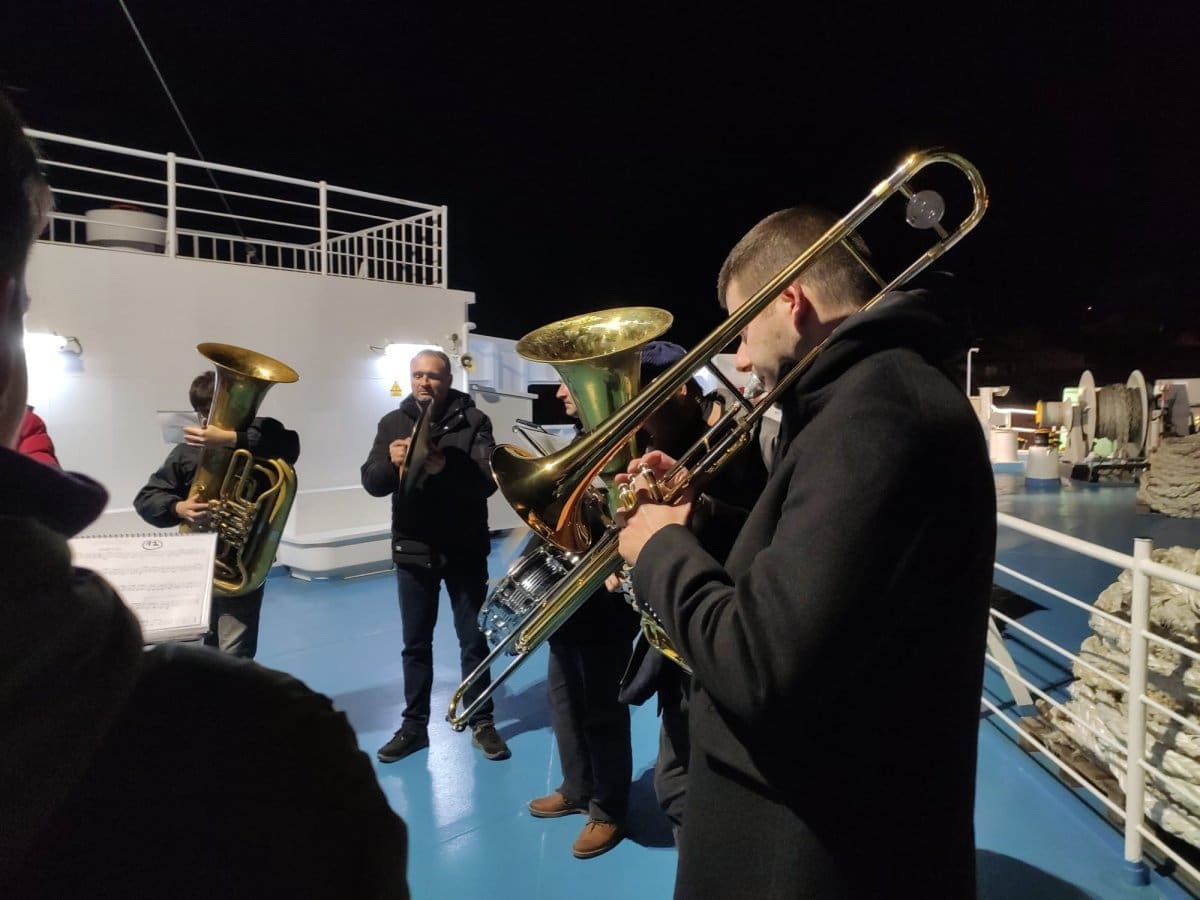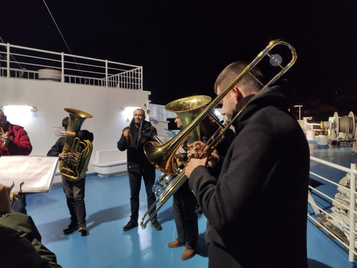 Na povratku s turneje, prilikom uplovljavanja u Vis na trajektu priredili su mali performans za sve okupljene putnike.
