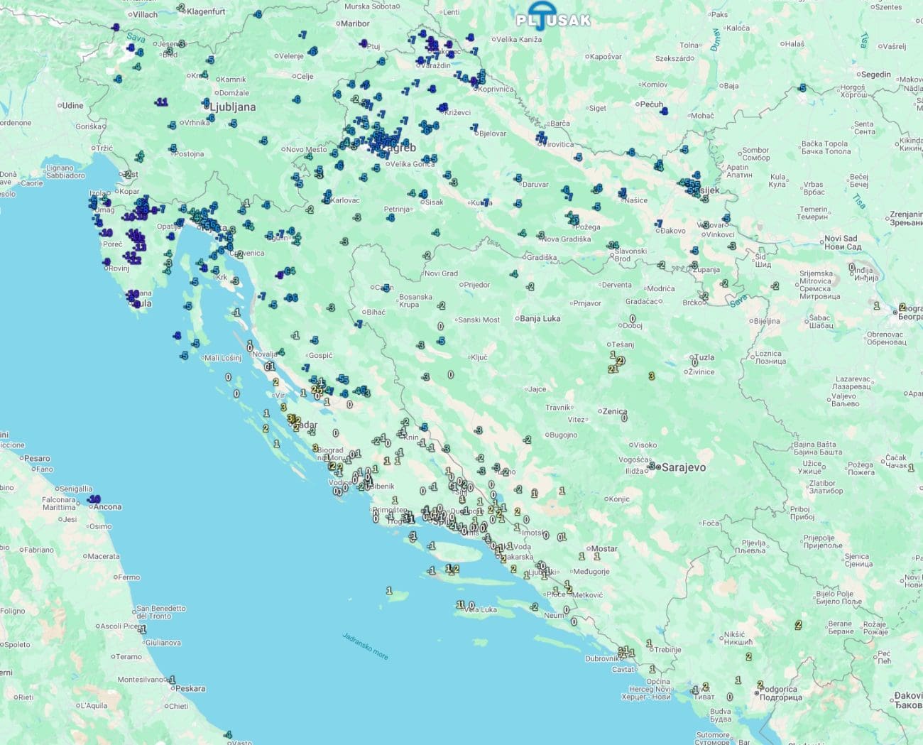 U 20 sati u unutrašnjosti Istre je samo 15 stupnjeva, uz obalu je 18 do 20. Čak 40 litara oborine po kvadratnom metru palo je u Višnjanu, a 34 u Kanfanaru.