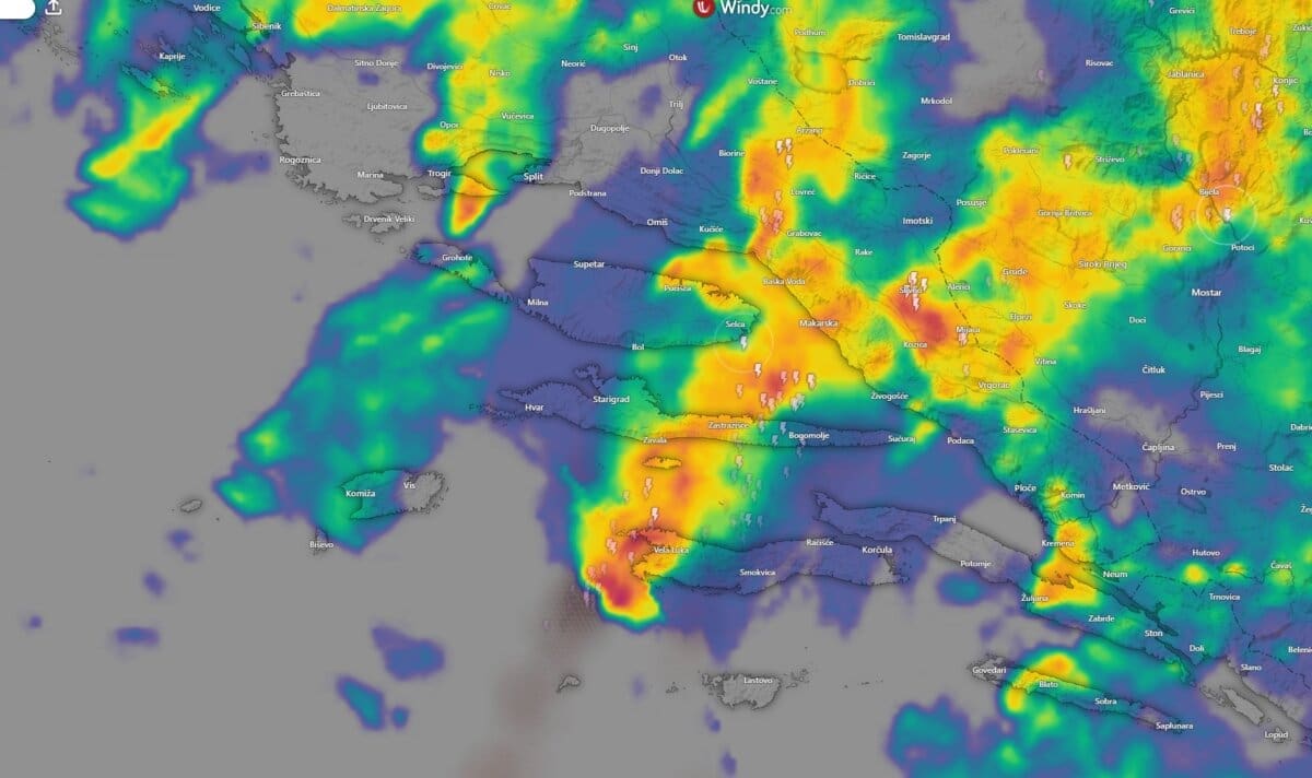 Nakon što je posljednja dva dana donijela obilne oborine sjevernom Jadranu, Lici i Gorskom kotaru, jače oborine u četvrtak navečer zahvatile su dijelove Dalmacije.