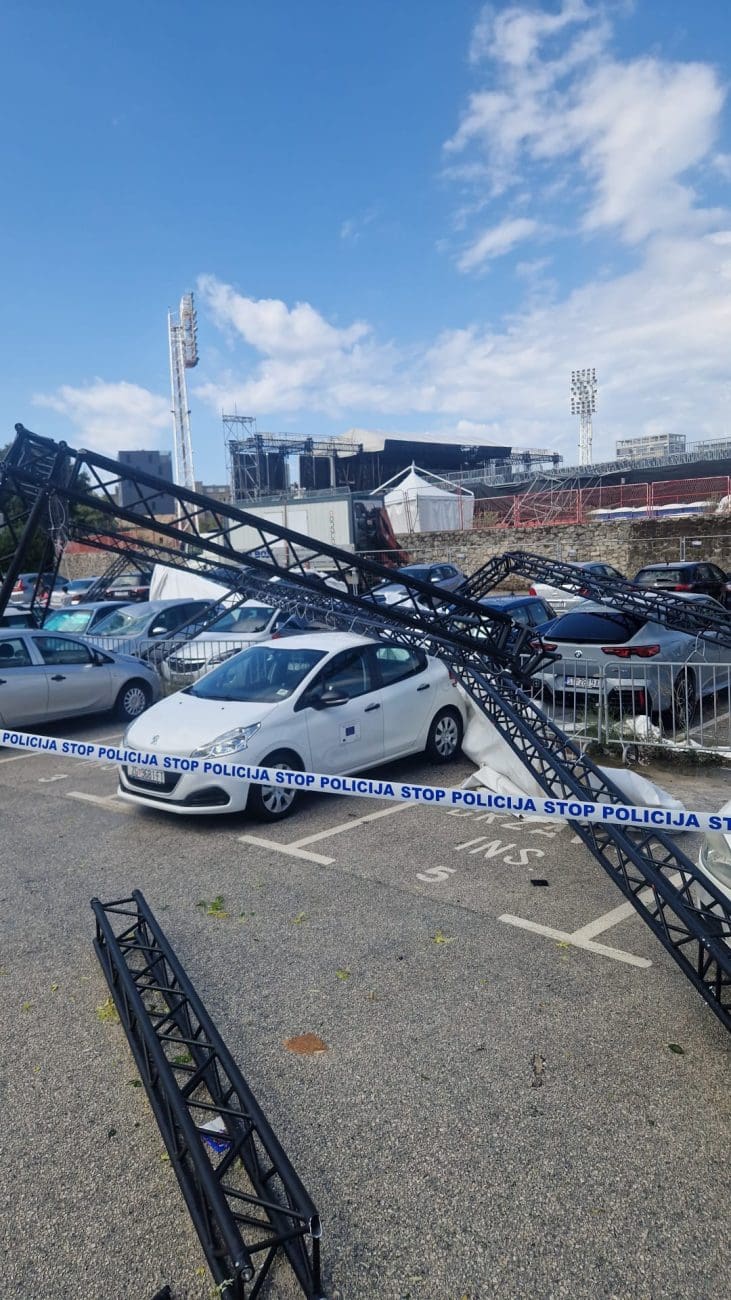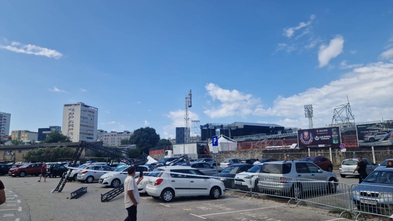 Vjetar je čupao stabla, a ispred TC Joker polomljena je čelična konstrukcija koja je pala na parkirana auta. Materijalna šteta je ogromna. Građani nam pojašnjavaju kako je to dio konstrukcije za Ultru.