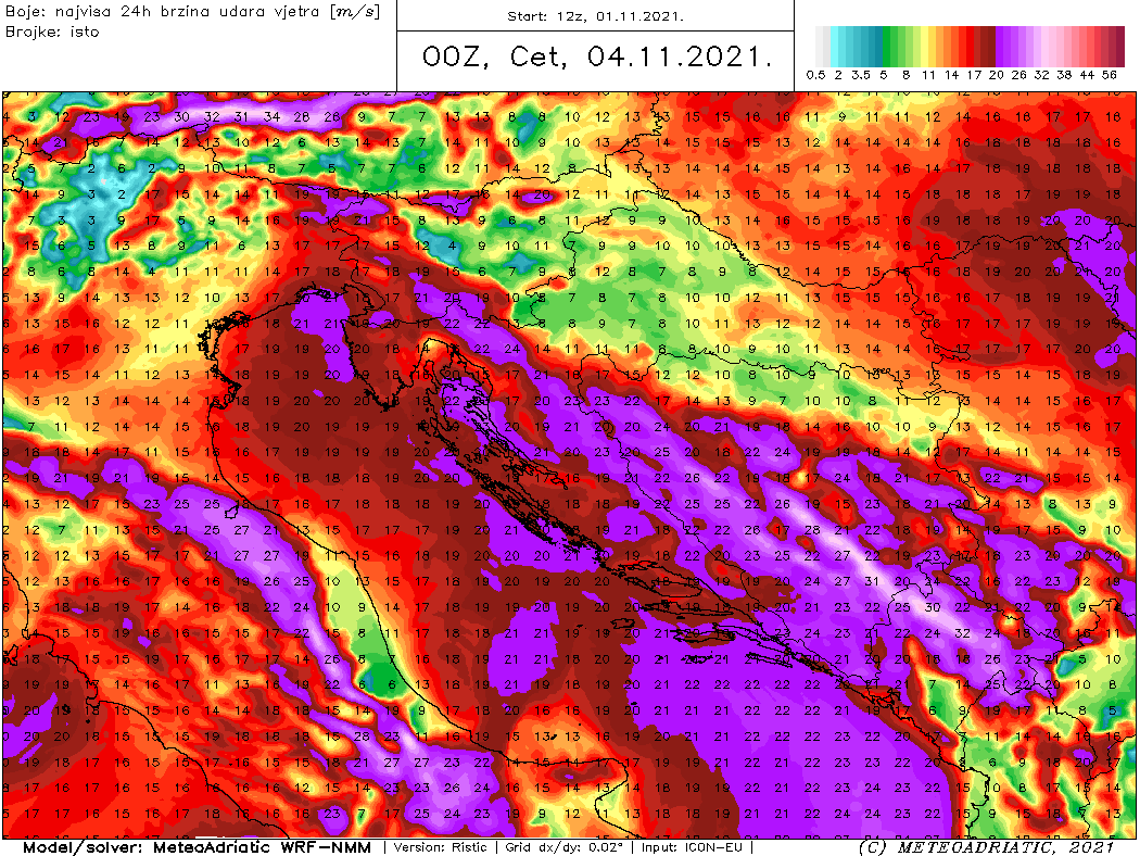 Već je do 20 sati bilo olujnih udara juga, primjerice u Splitu puše do 79 km/h. Nakon što će u utorak jugo prolazno prestati, u srijedu će ponovno zapuhati i imat će olujne udare, a vrhunac će imati pred novu ciklonu, u četvrtak, kada se očekuju udari preko 100 km/h na moru, a ponegdje i ekstremna količina oborina.