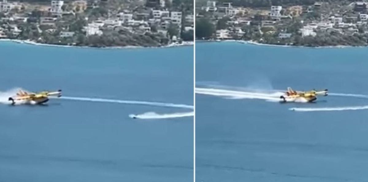 Nevjerojatna snimka stiže iz Turske na kojoj se vidi kako kanader, koji se spustio na površinu mora kako bi uzeo vodu mora kočiti da izbjegne direktan sudar s vozačem jet-skija!