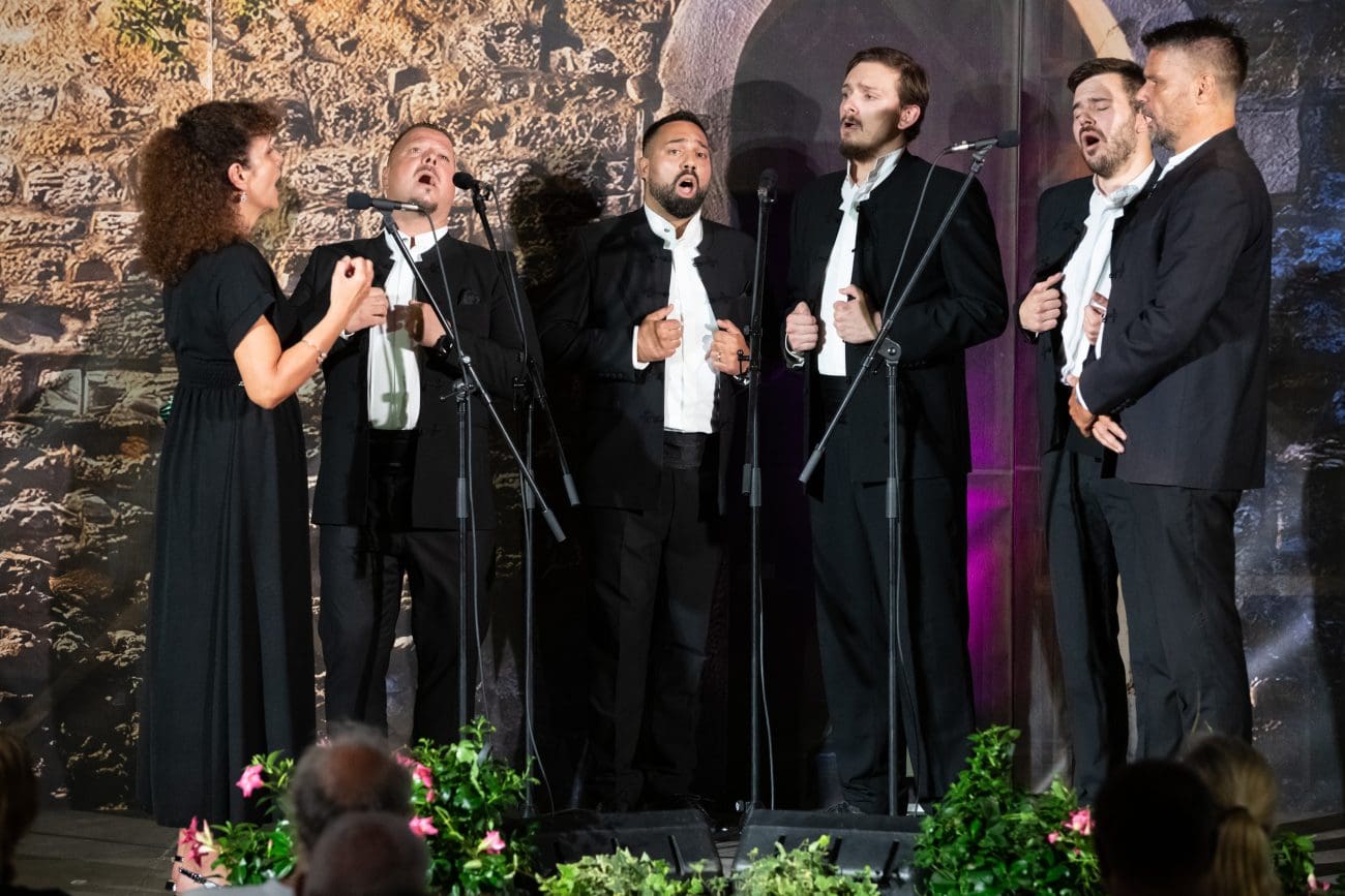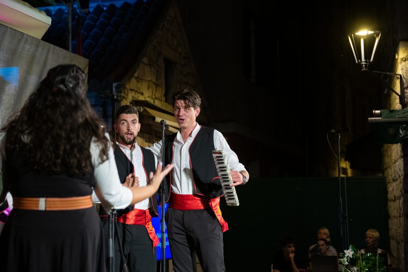 Na Večeri mješovitih klapa nastupilo je ukupno njih devet, a u Omiš su stigli nakon uspješno odrađenih audicija. Svi su sinoć pokazali da su s razlogom tu. Do posljednjeg mjesta ispunjeno gledalište tako je uživalo i u izvedbama klapa Pulena i Sfida iz Korčule, Ferate KUD-a Filip Dević (Split), KUD-a Stjepan Radić (Pridvorje - Konavle), klape Sveti Ante (Zagreb) i klape Cetinjani (Hrvace). U revijalnom dijelu pjevale su splitske, ženske klape Orca i Ventula, a održana je i promocija notne edicije Blaženka Juračića - Jubav je čarobna bila.
