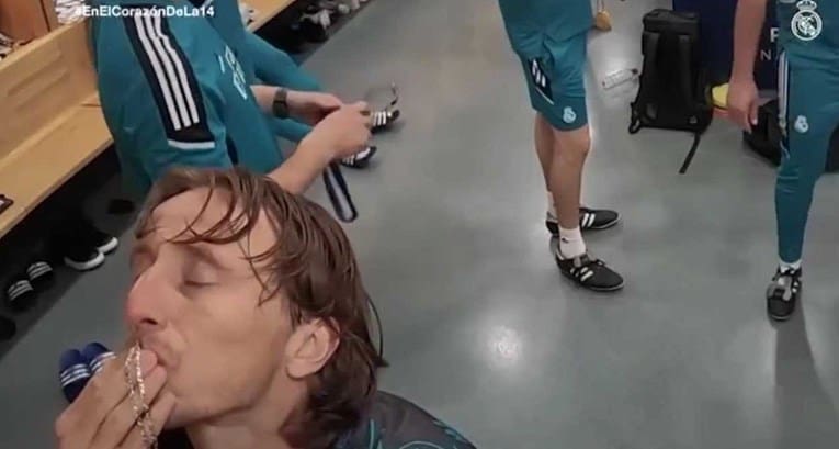 Svaki od igrača različito se pripremao za utakmicu. Ancelotti se izdvojio i skrolao po mobitelu, Kroos fenom sušio kopačke, Benzema češljao bradu, a Militao četkao kosu. Vinicius je stavljao lak za kosu, a Modrić zatvorenih očiju ljubio križ na krunici.