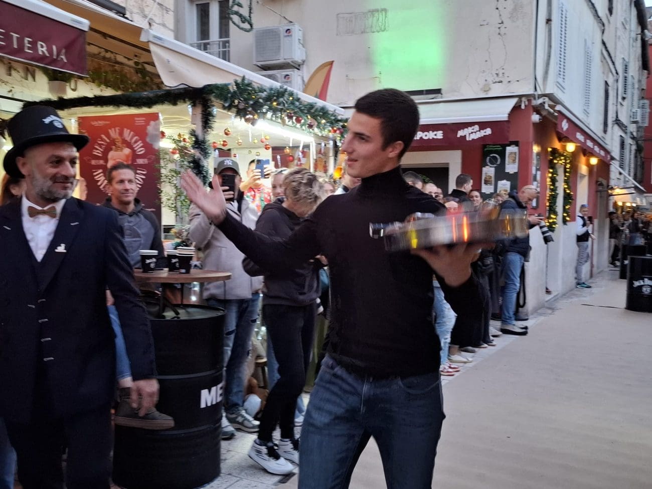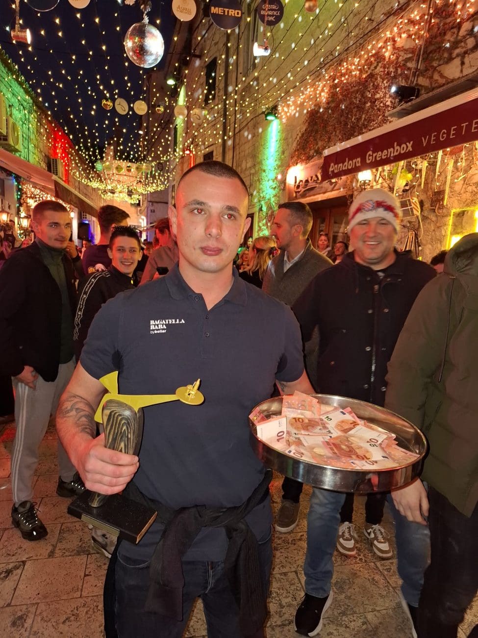 Natjecanje prati četvero sudaca s poznate splitske ugostiteljske scene, a tu je i “VAR” sustav – publika glasno reagira na svako prolijevanje ili razbijanje tacne.