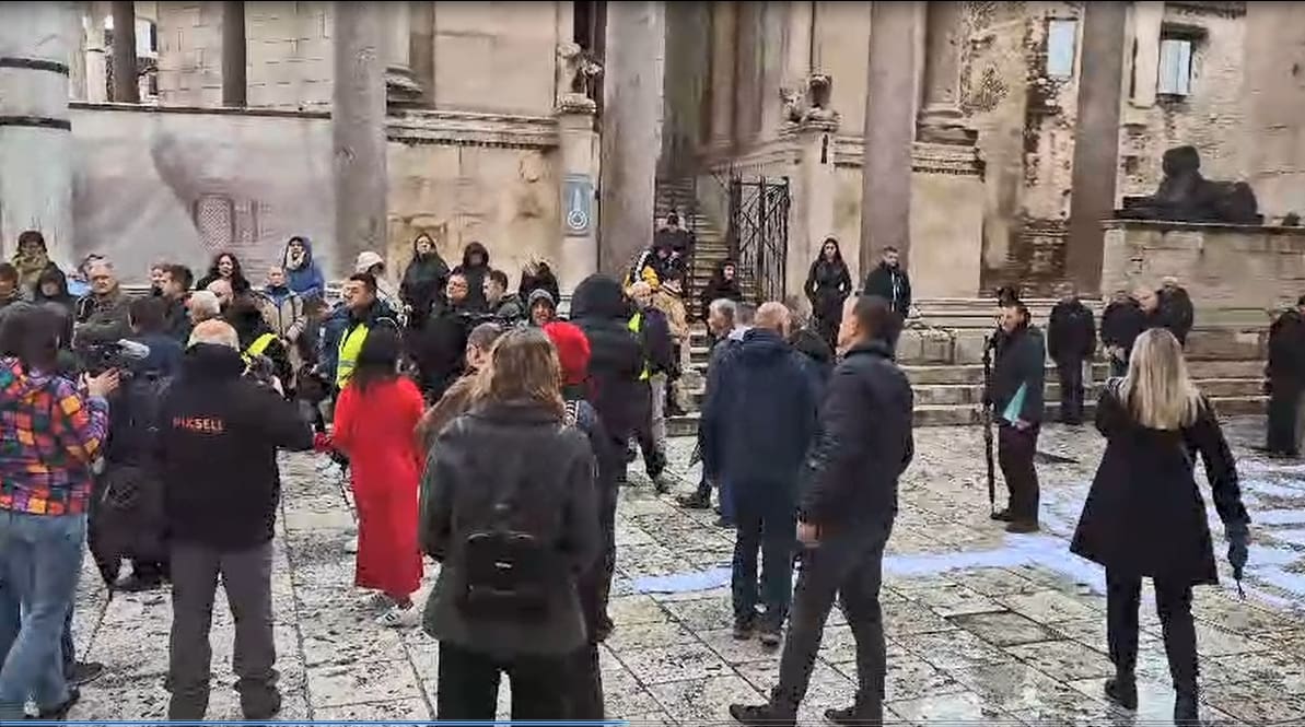 Kao što je to već uobičajeno svake prve subote u mjesecu, i danas su se na Peristilu okupili molitelji koji su u 8:30 započeli polusatnu molitvu. U Splitu ih je dočekao prosvijed Udruge Domine i poznate umjetnice Arijane Lekić-Fridrih.
