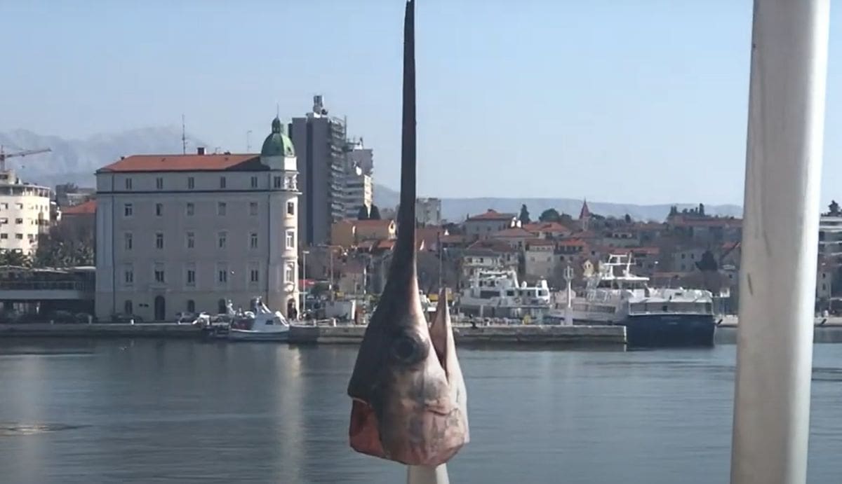 No, jutros nešto neočekivano. Na udicu je stavljena glava sabljarke. Izazvalo je to pažnju građana.