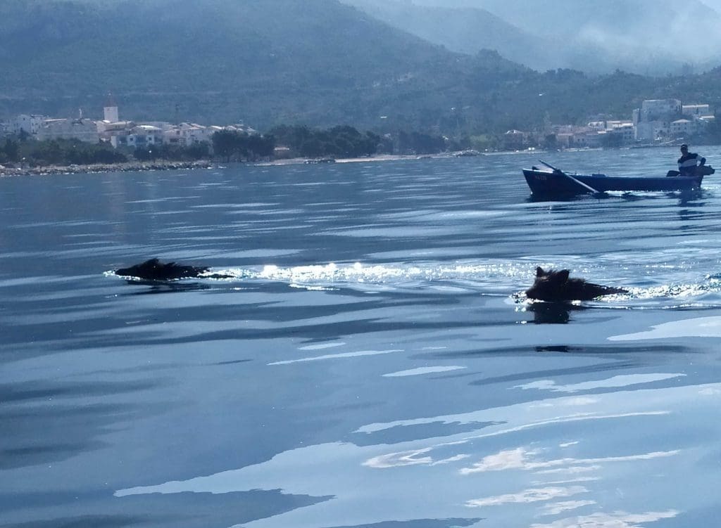 Makarski ribari uočili su i snimili dvije divlje svinje u naponu snage koje sigurnim zaveslajima plivaju do kopna. Zabilježili su trenutak dok plivaju, nisu ih uznemiravali, pa su životinje sigurno i isplivale na kopno i nestale u šumi. Kako je to izgledalo, ispričali su za Morski.hr Mario Radojković i Slobodan Batinić iz Makarske.