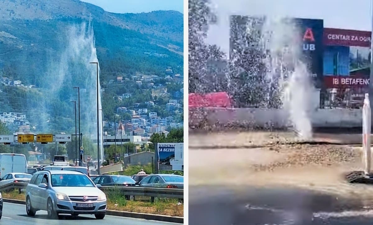 Nastao je vodeni mlaz viši od 10 metara. Nogostup se natopio vodom, ali i dio kolnika gdje su se slili i voda i blato.