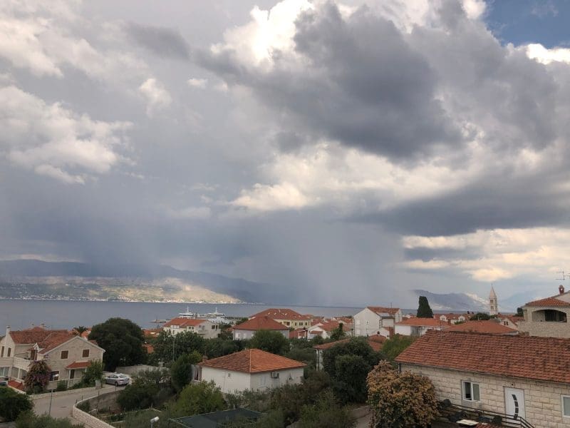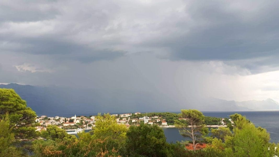 Iako se u većini krajeva zadržalo suho, u popodnevnim satima u srednjoj Dalmaciji je bilo jačeg razvoja oblaka, ponegdje uz kišu, pljuskove i grmljavinu.