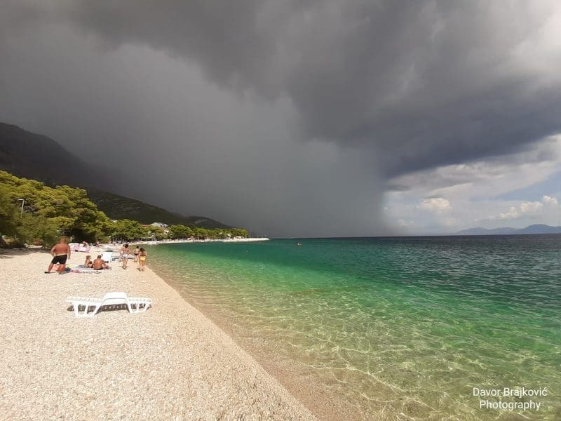 Izraženi pljusak na moru pred Brelima