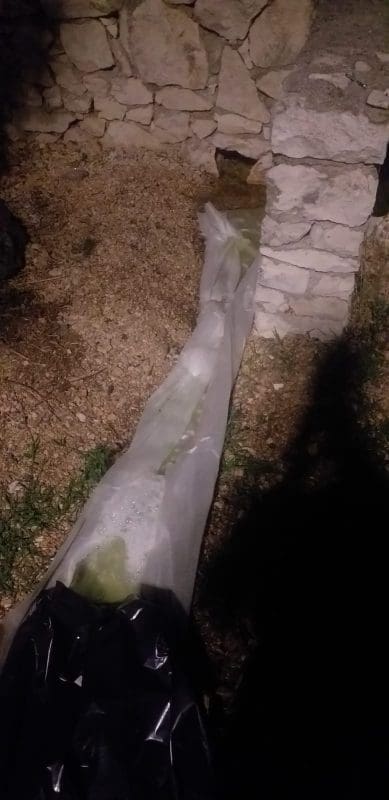 Trenutak je da se vratimo malo unazad kroz vrijeme, ne puno, samo do utorka navečer. U kasni večernji sat je naime preko šetnice koja nosi ime djeda Segetske alfe&omege, Vice Zulima Virulice, netko postavio improvizirane cijevi preko kojih bi se nepažljivi (moglo bi se reći i slabovidni, jer je puteljak dobro osvijetljen) šetač lako mogao ozlijediti. Ukratko, cijevi su prepriječile put kako se vidi na fotografijama, a kroz mali otvor u suhozidu s južne strane šetnice voda je otjecala direktno u more. Lako sad za potencijalne ozljede, no autora ove instalacije mještanin je prijavio policiji zbog sumnje u počinjenje kaznenog djela protiv okoliša...