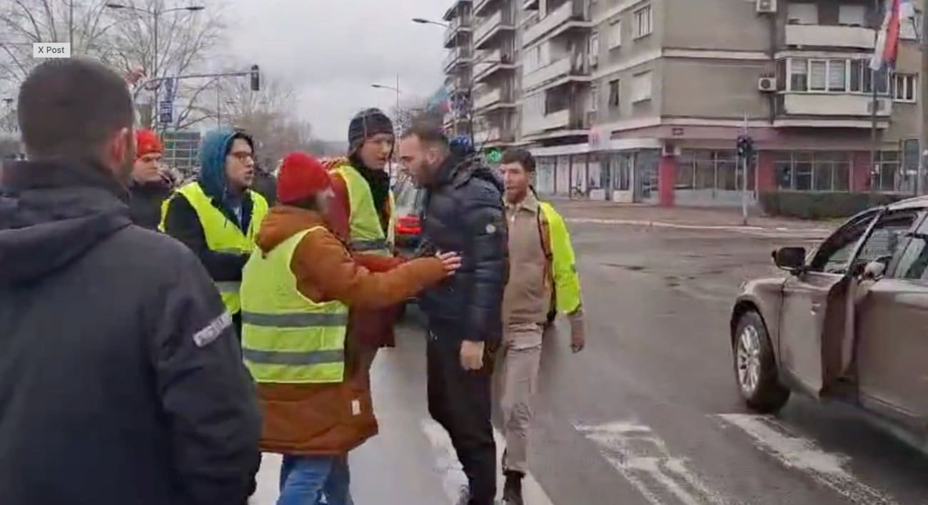 Najprije je autom krenuo kroz masu, a zatim izašao iz vozila i započeo svađu sa studentima.