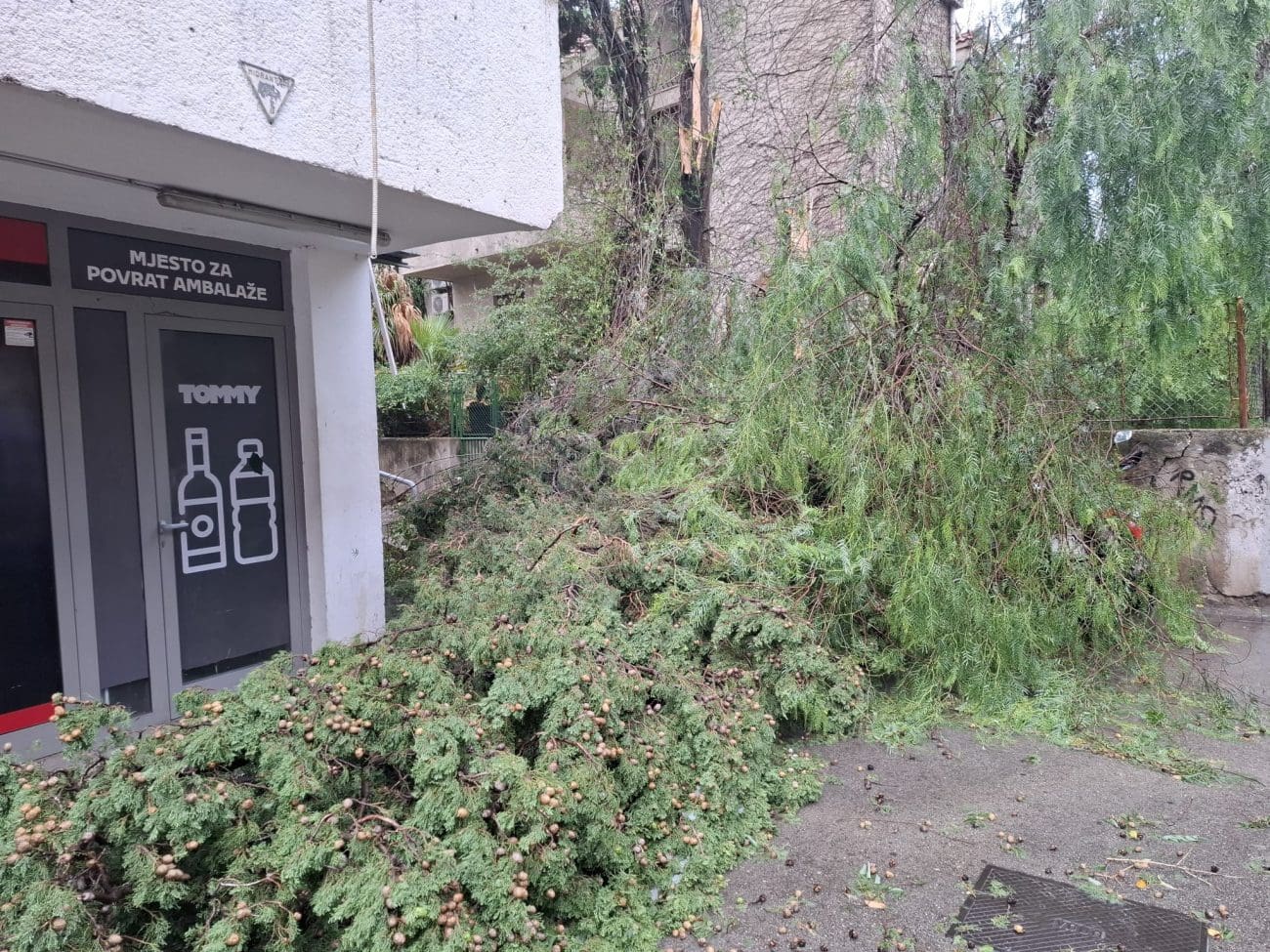 Na snimci koju smo zaprimili iz Matoševe ulice vidi se kako snažan nalet vjetra doslovno čupa veliko stablo iz korijena, dok prolaznici u panici pokušavaju pronaći zaklon. U istom trenutku, okolne ulice postale su neprohodne, a Marmontova je nakratko izgledala kao planinski potok – bujica vode slijevala se niz pločnik.