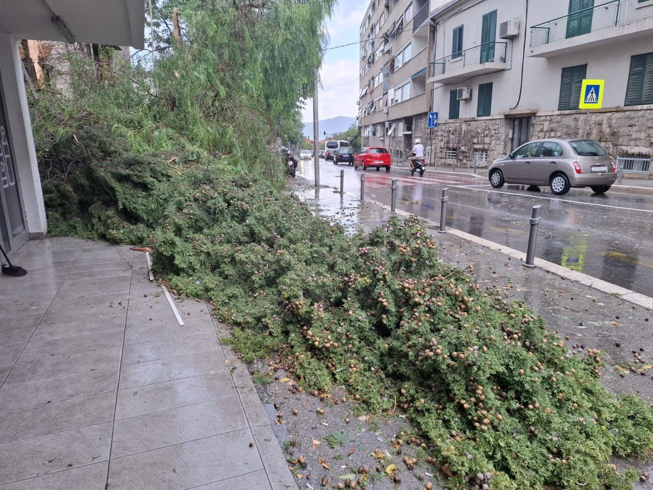 Silovito nevrijeme pogodilo je Split jutros nešto prije 9 sati, izazvavši kaos na ulicama. Olujni vjetar i jaka kiša u kratkom su roku pretvorili grad u poprište meteorološke stihije, a najdramatičnije scene dolaze iz samog centra.